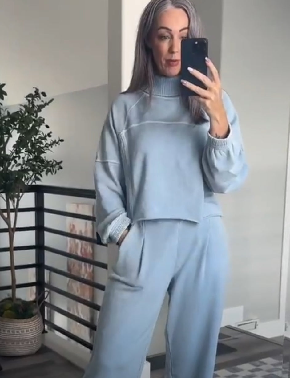It’s more than a staple. A t-neck is a lifestyle. This one has extra chill in the deets, all the way down to the light crop & raw hem.