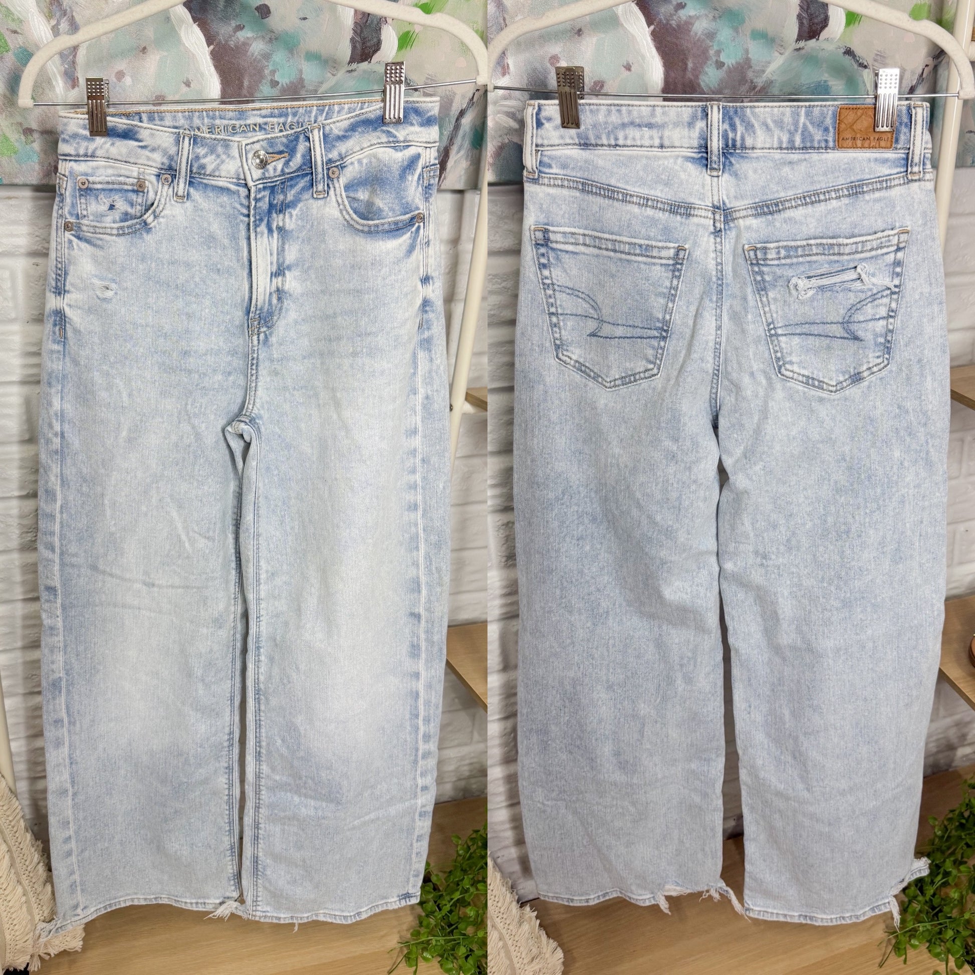 American Eagle Dreamy Drape Stretch Super High-Waisted Baggy Wide-Leg Jean (00)
