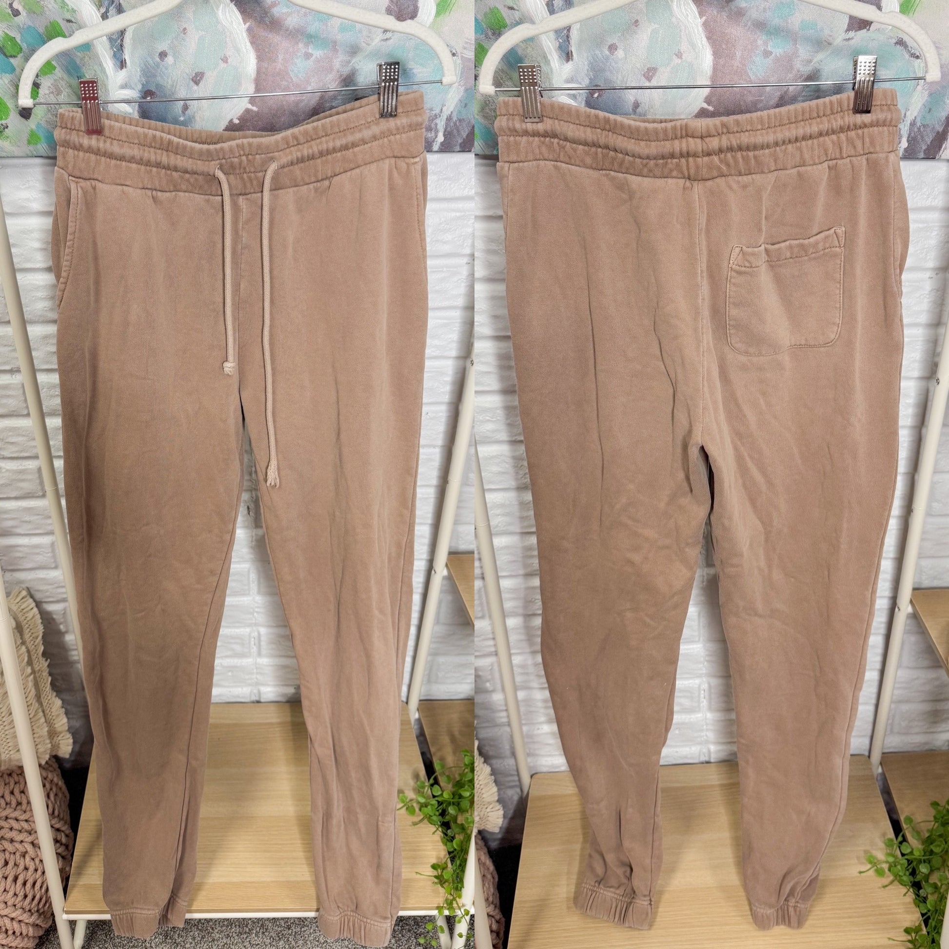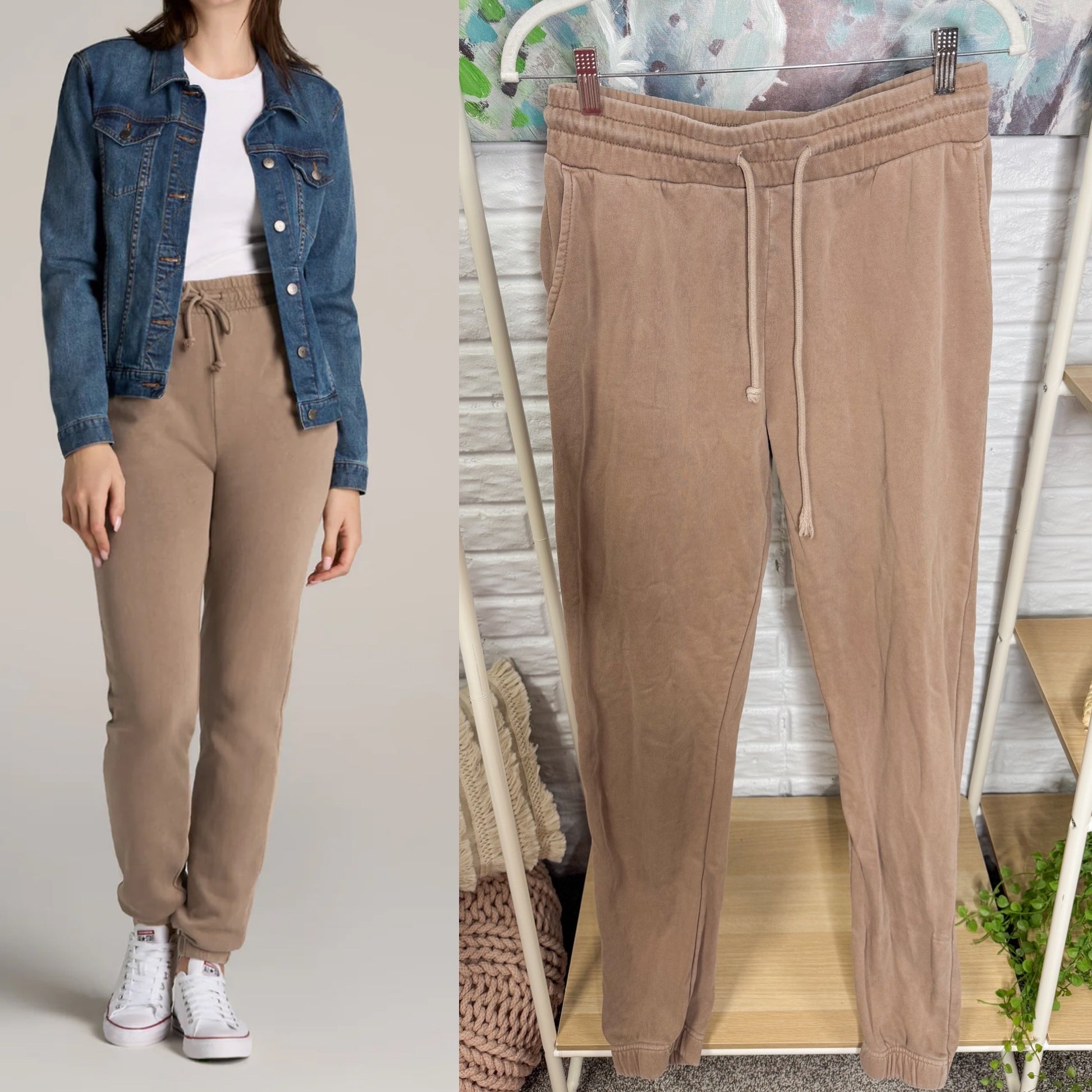 American Tall FLEECE SLIM-FIT HIGH-WAISTED WOMEN'S GARMENT DYE SWEATPANTS IN LATTE (L/T)