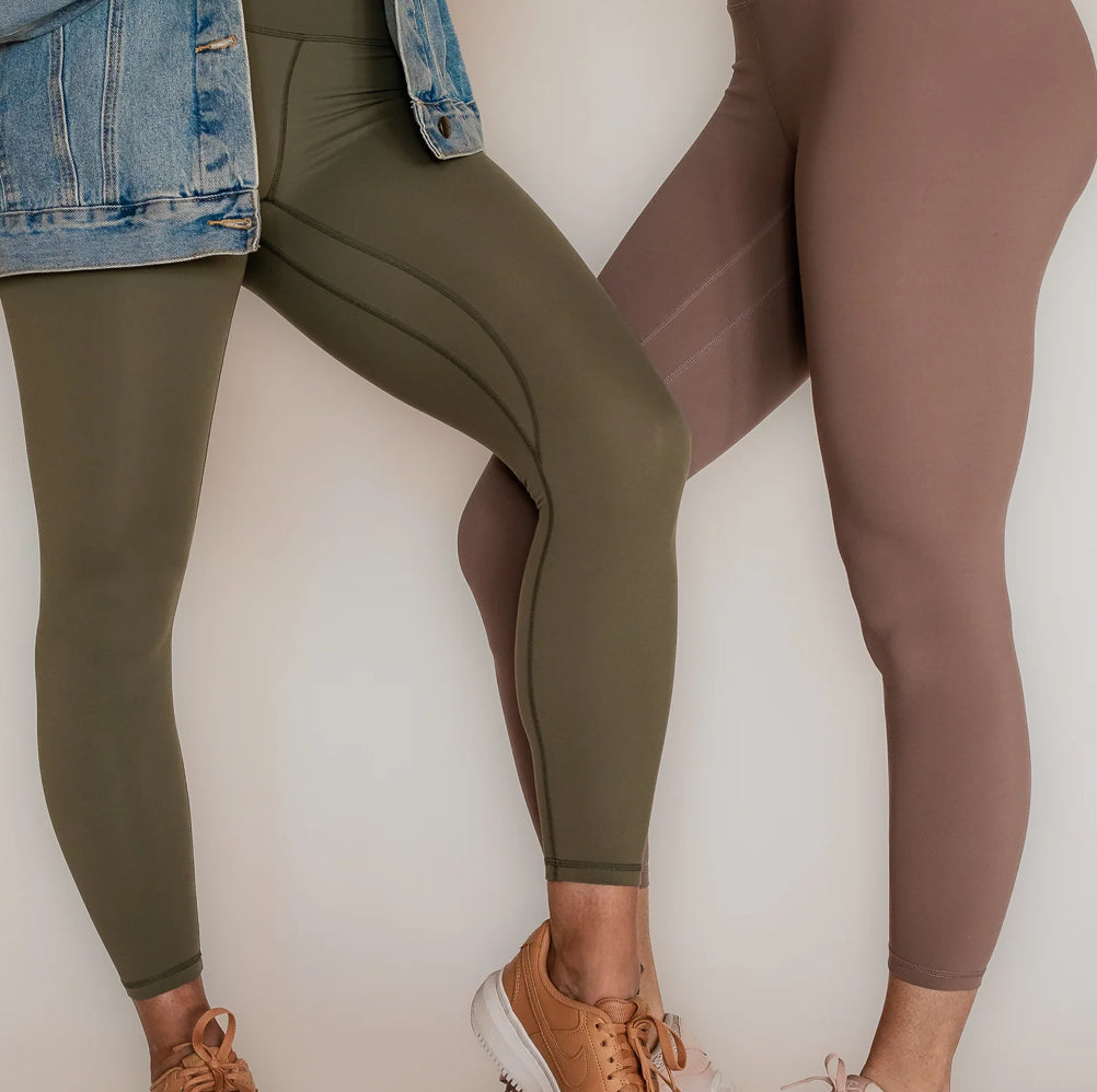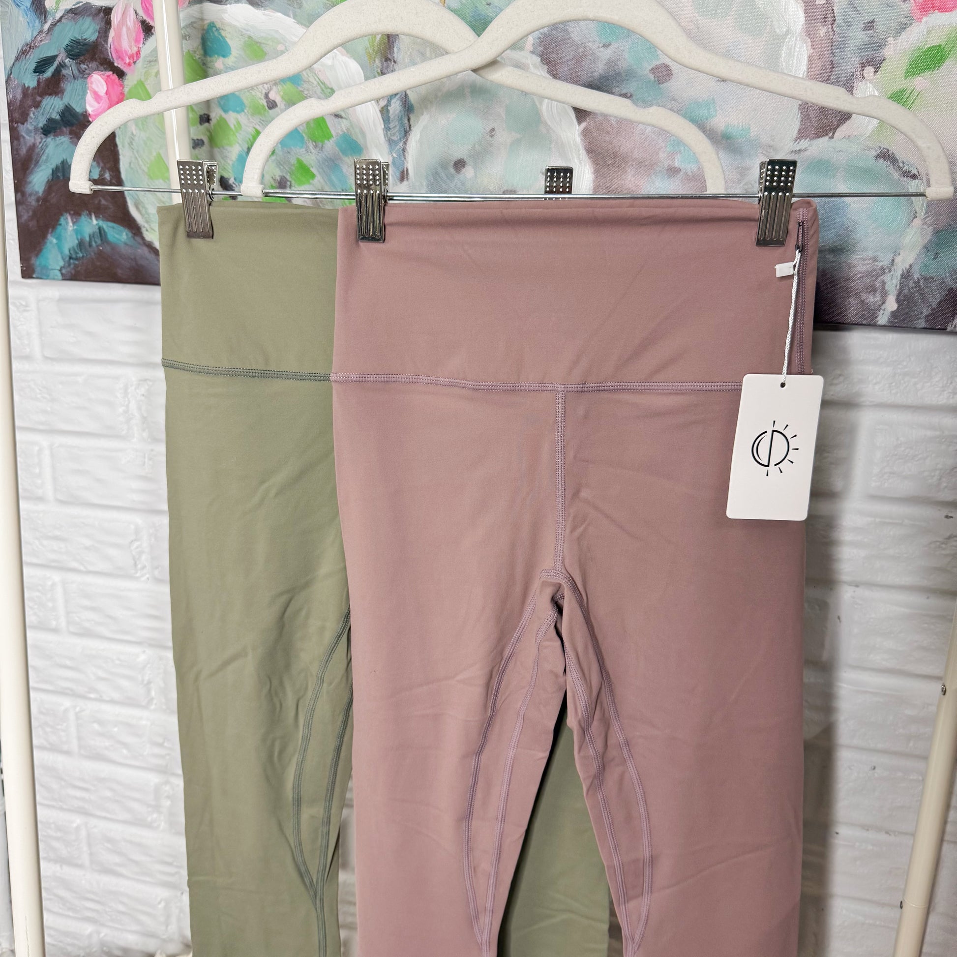 Two piece full length high waisted legging bundle in the colors “sage” and “lilac”.