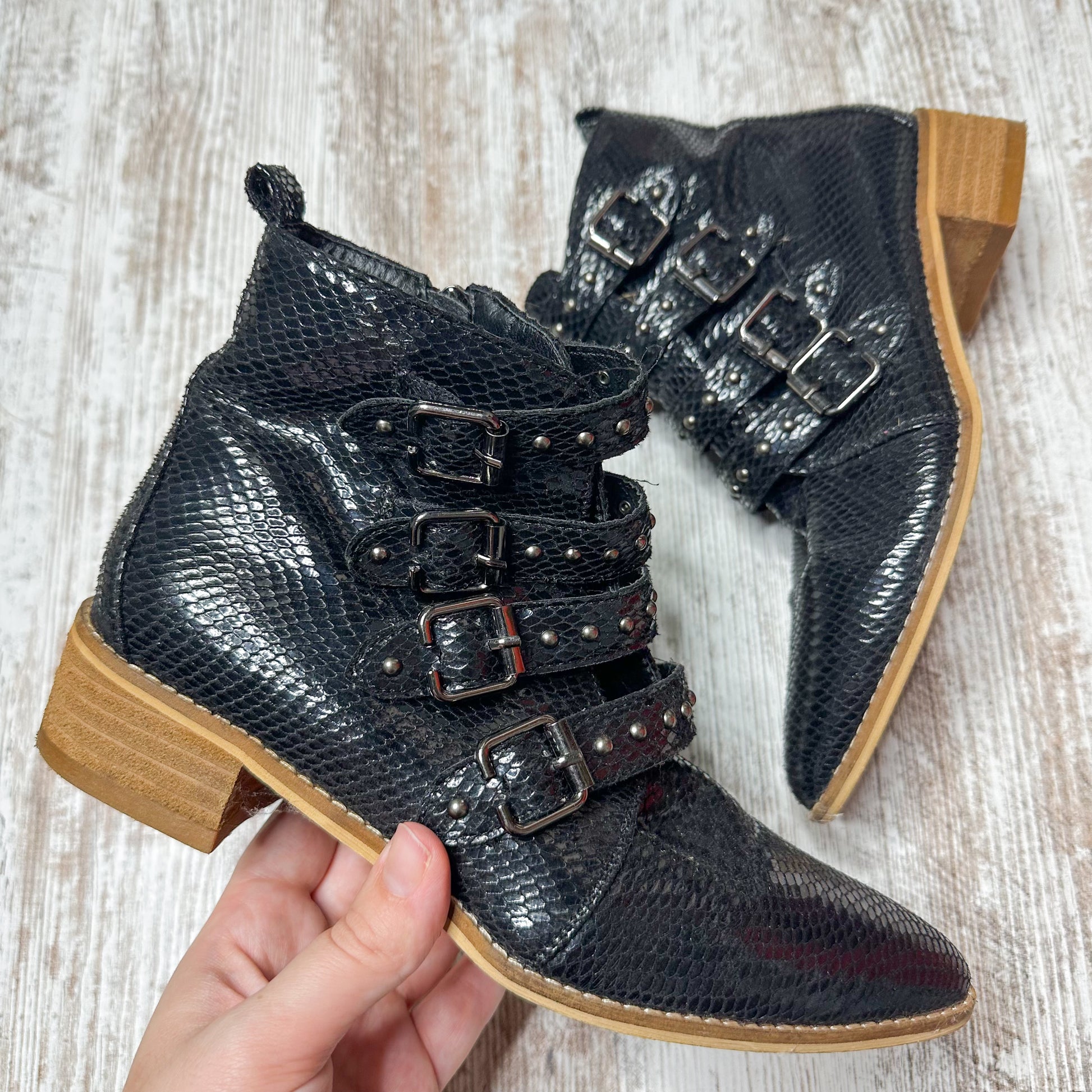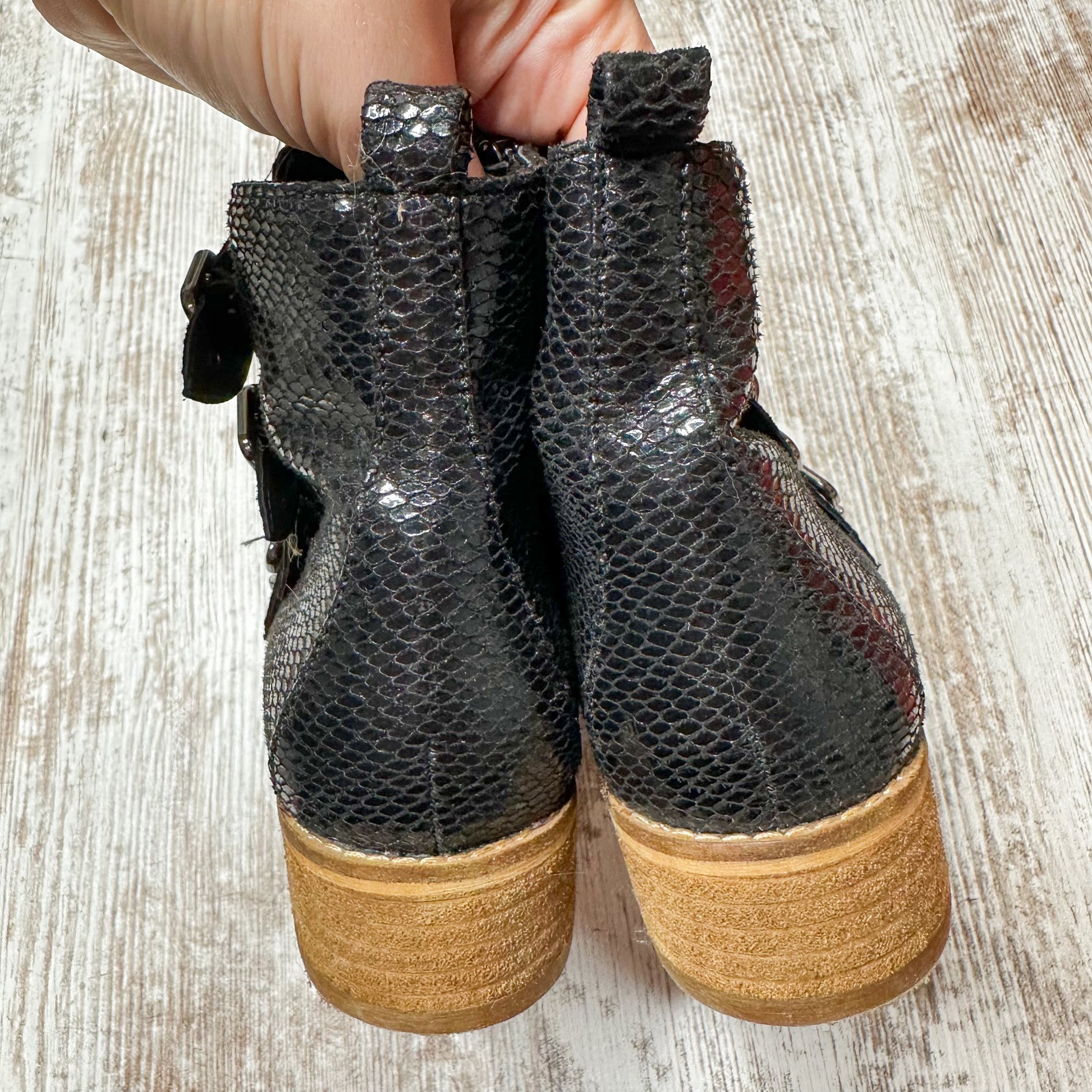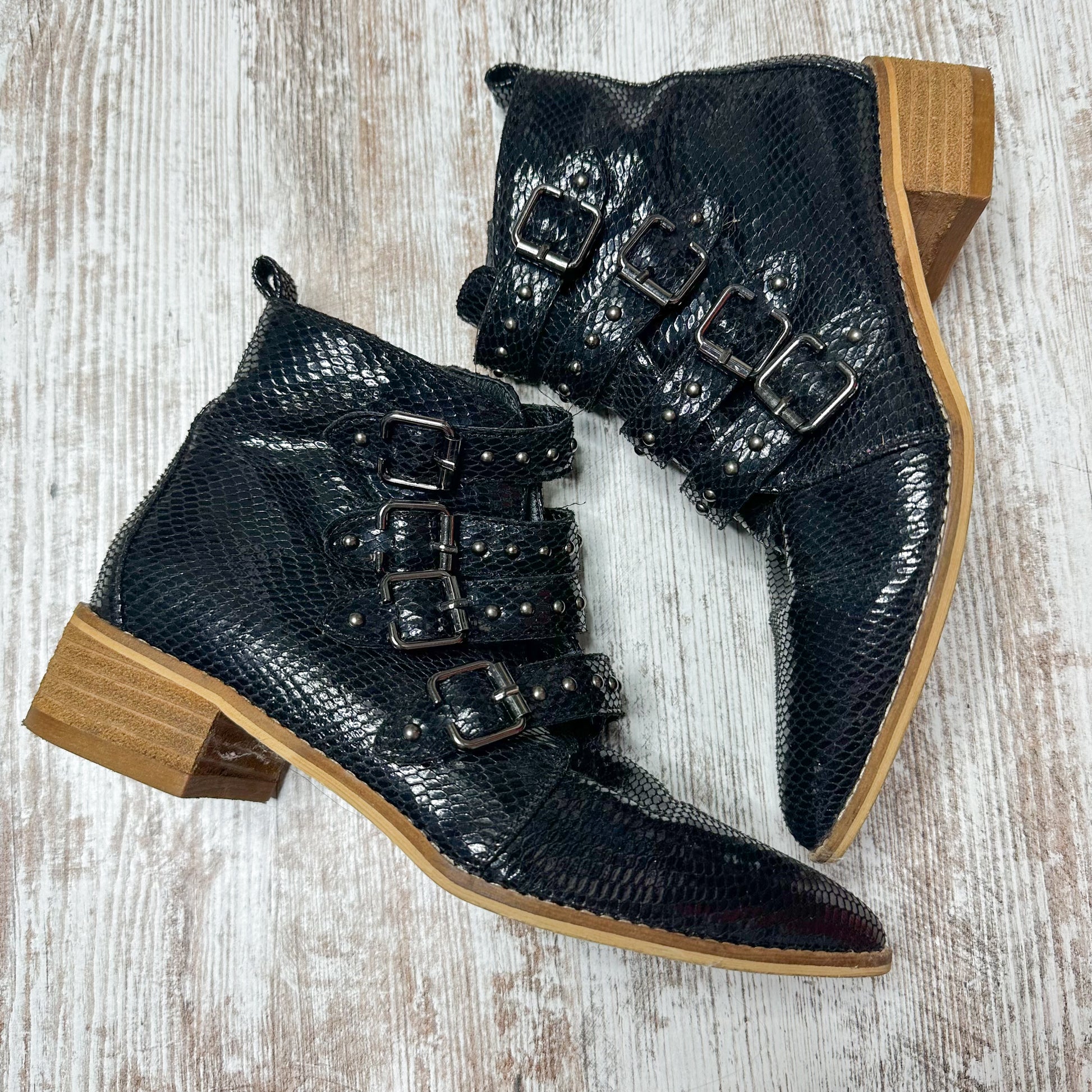 CCOCCI Black Snake Print Buckle Ankle Boots Size 7