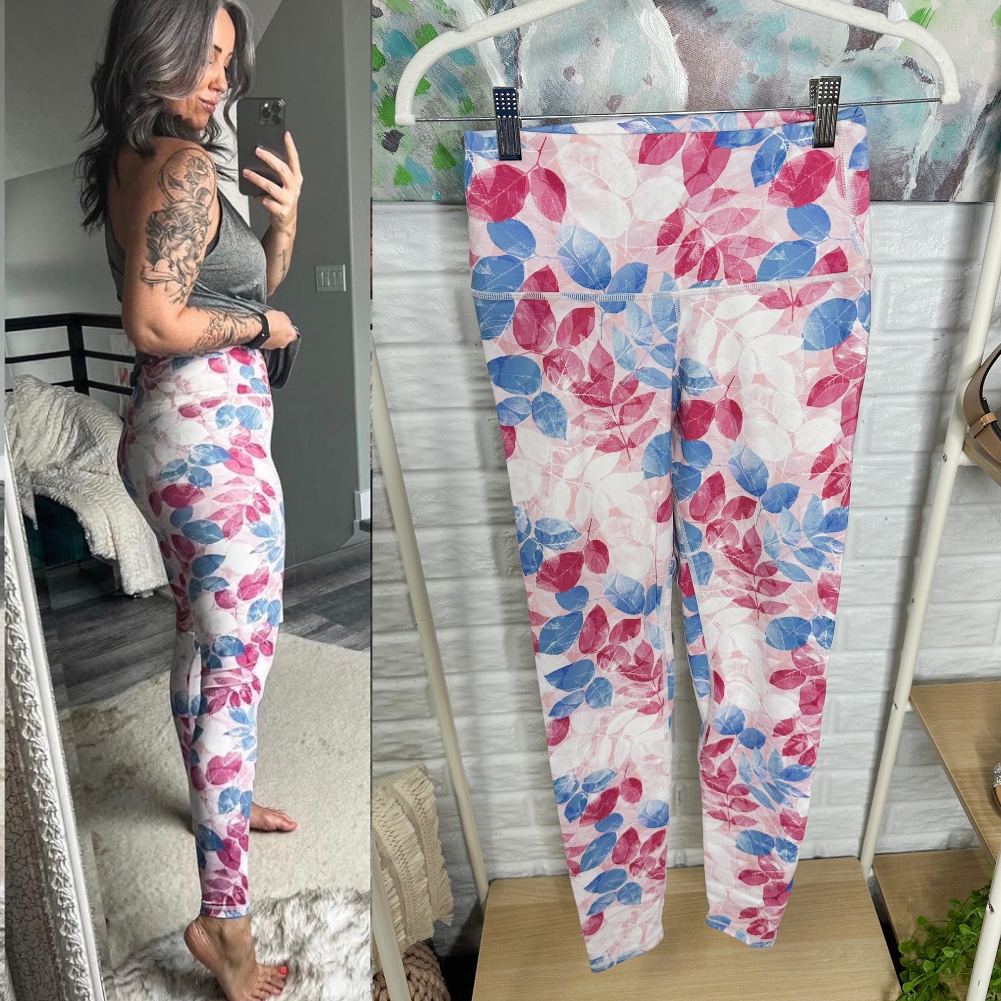 Colorfulkoala Pink Leaf High Waisted Legging Size Medium
