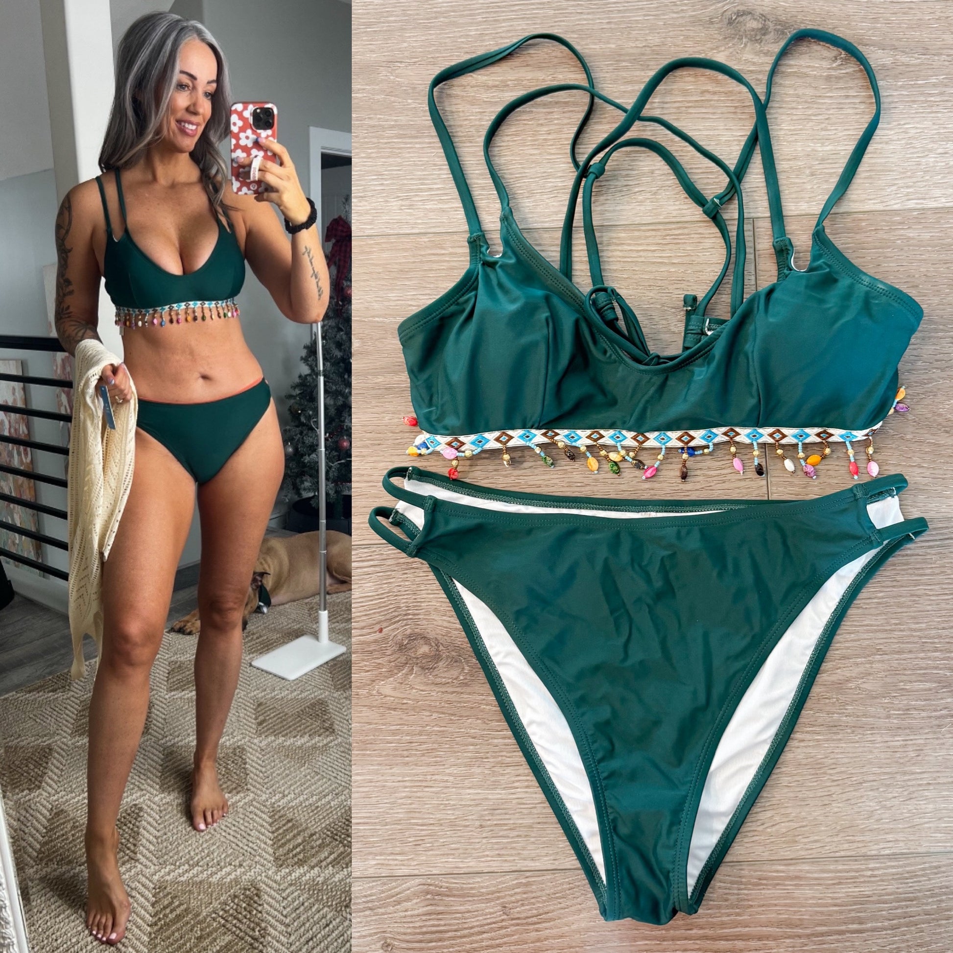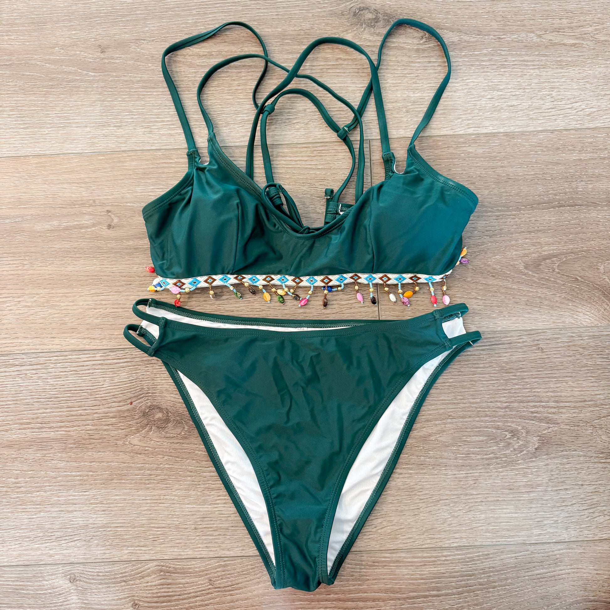 Cupshe Green Beaded Bikini Top & Cutout Cheeky Bottoms Set (M)