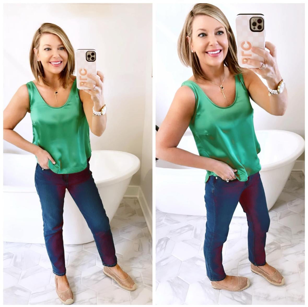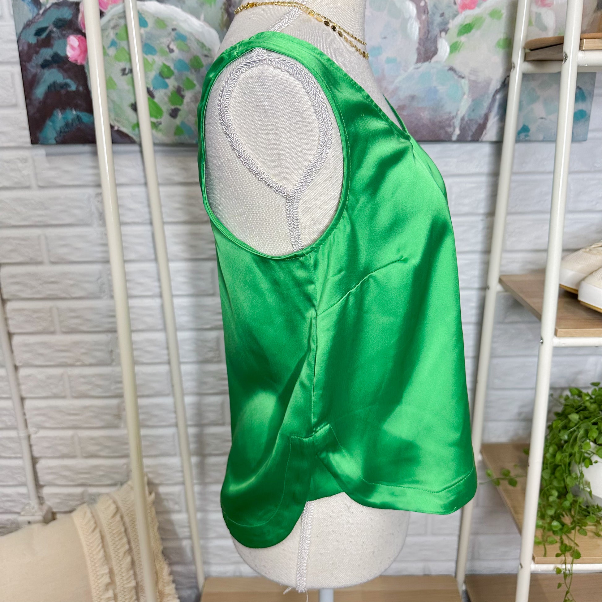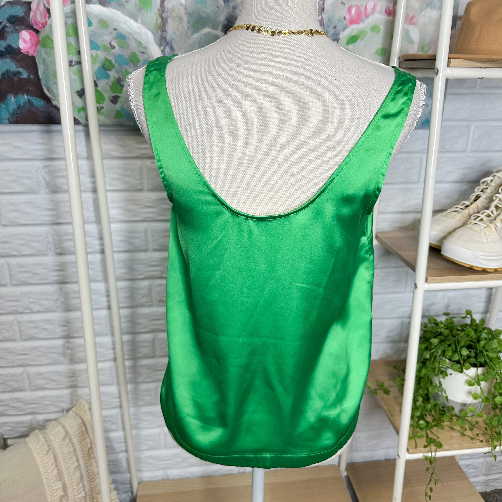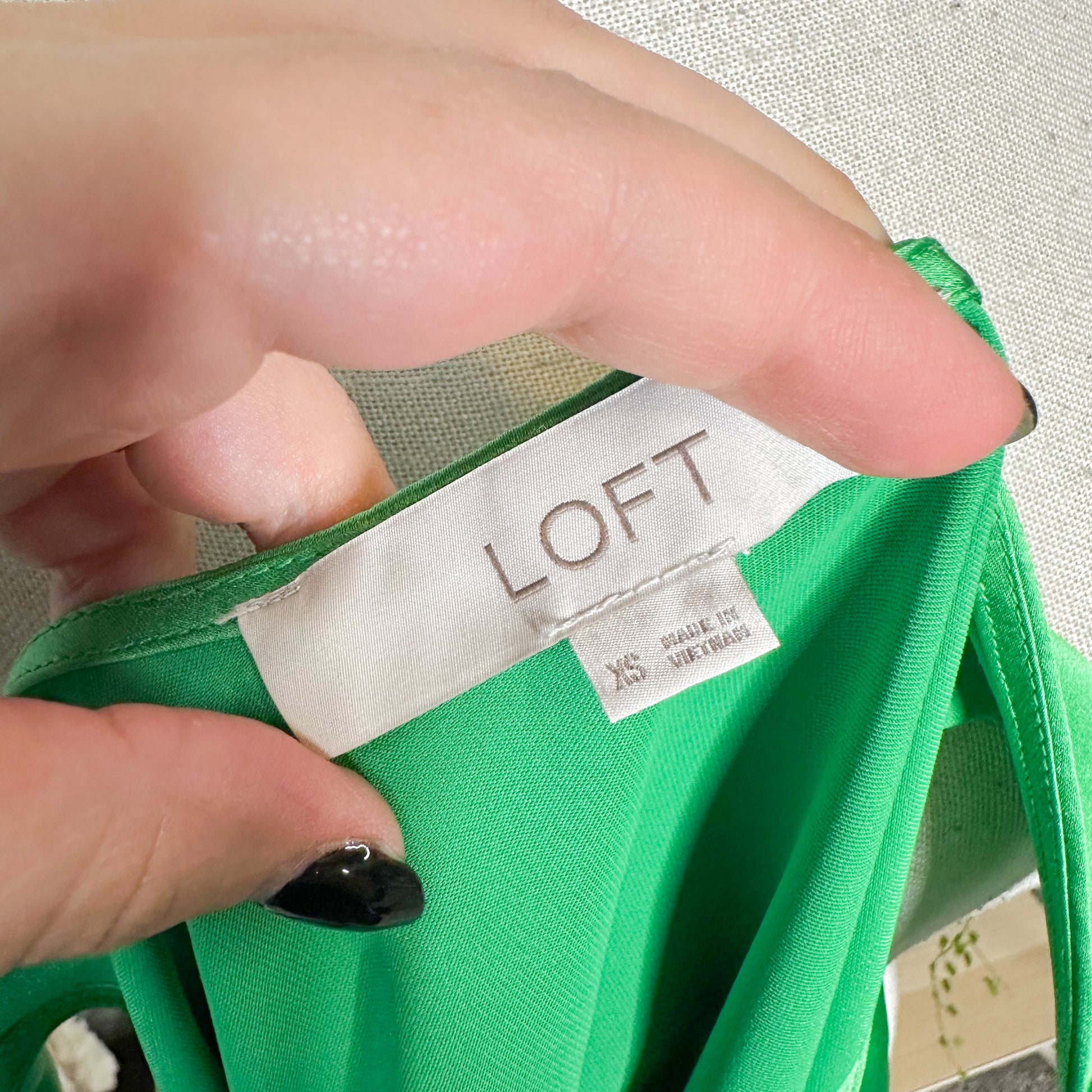 LOFT Green Satin Hi-Lo Hem Tank Top (XS)
