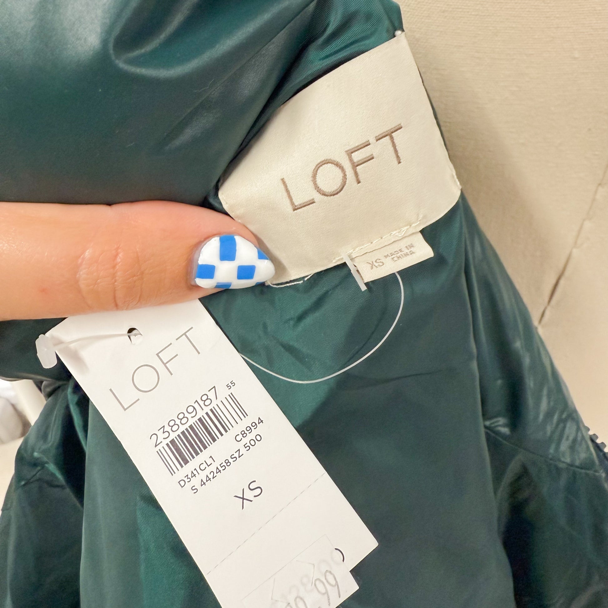 Loft New Emerald Green Puffer Jacket (XS)