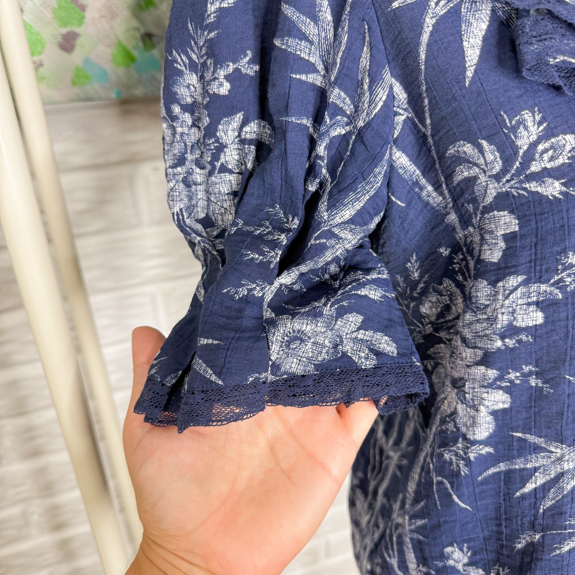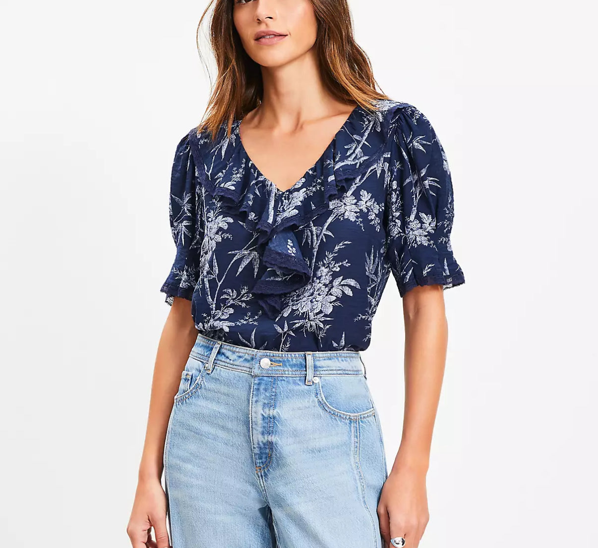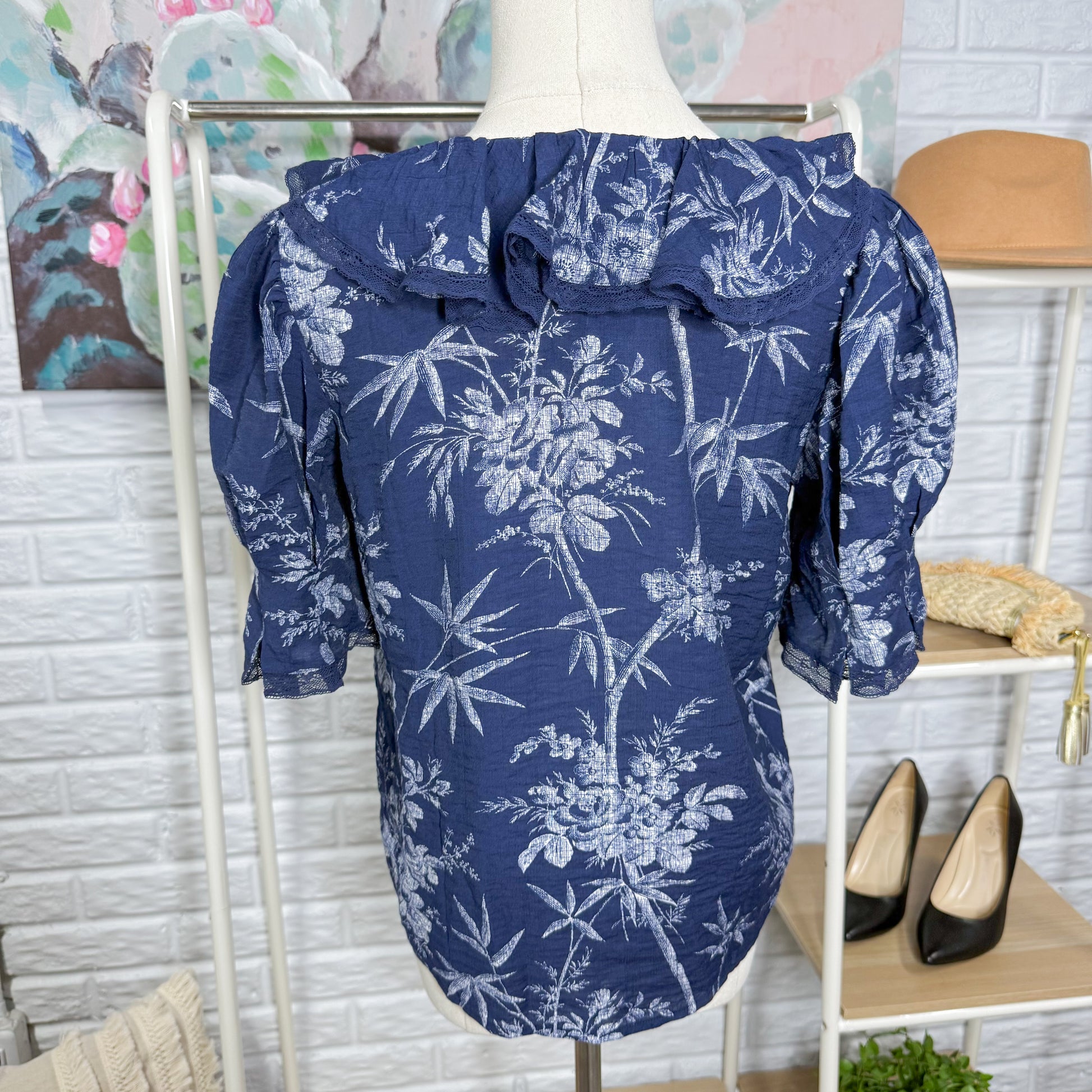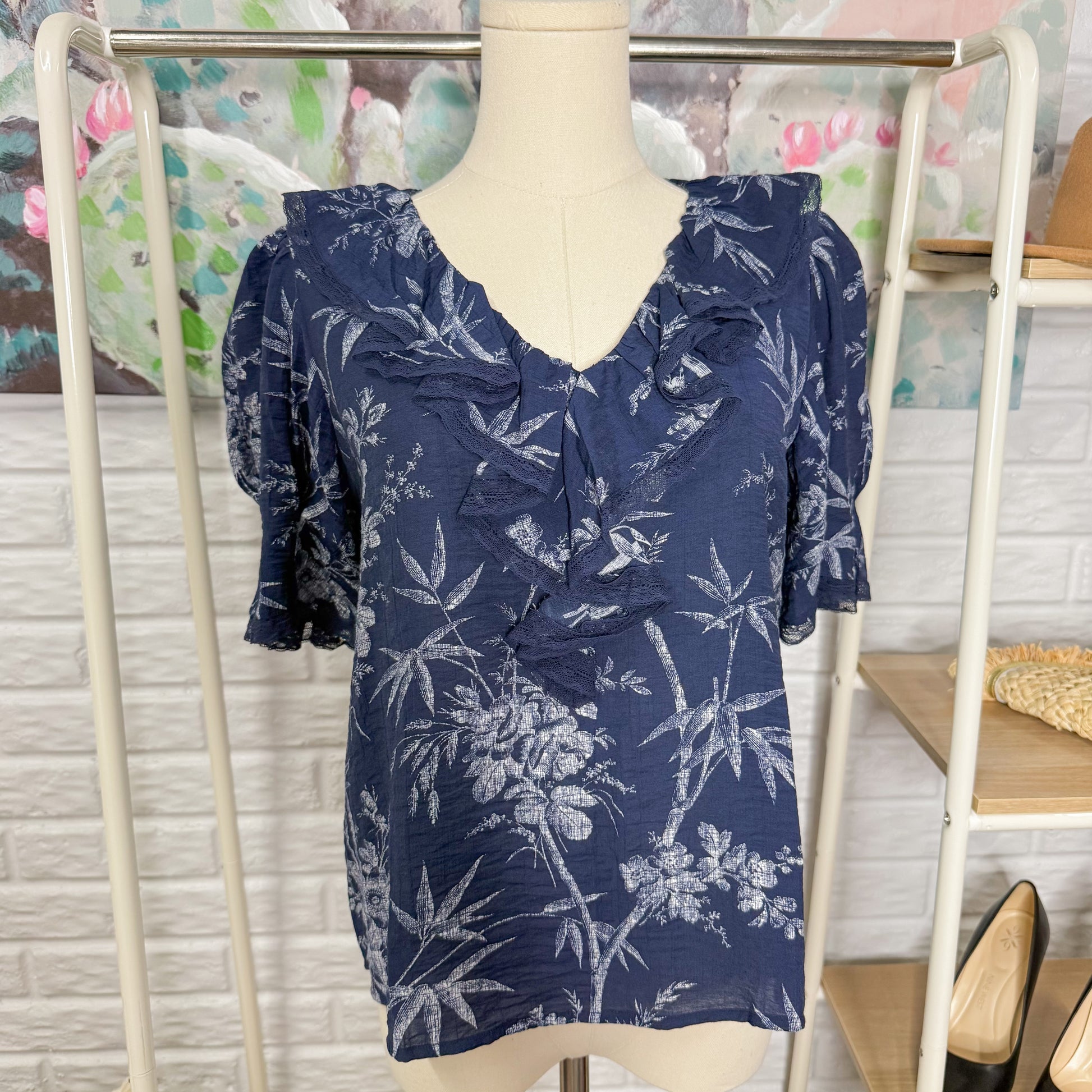 LOFT New Palm Lace Trim Ruffle Blouse (XS)