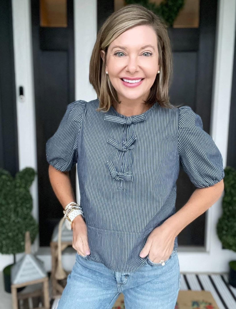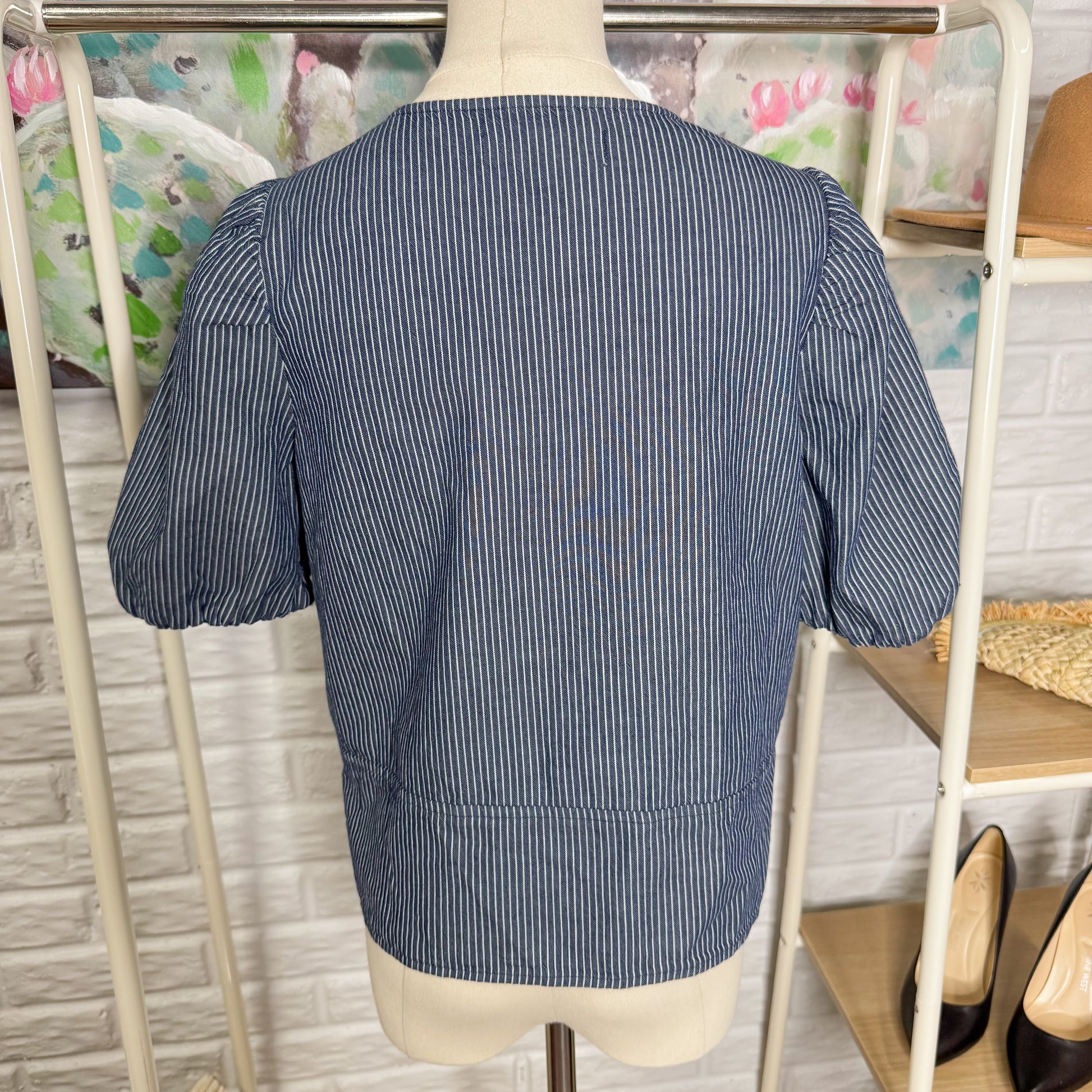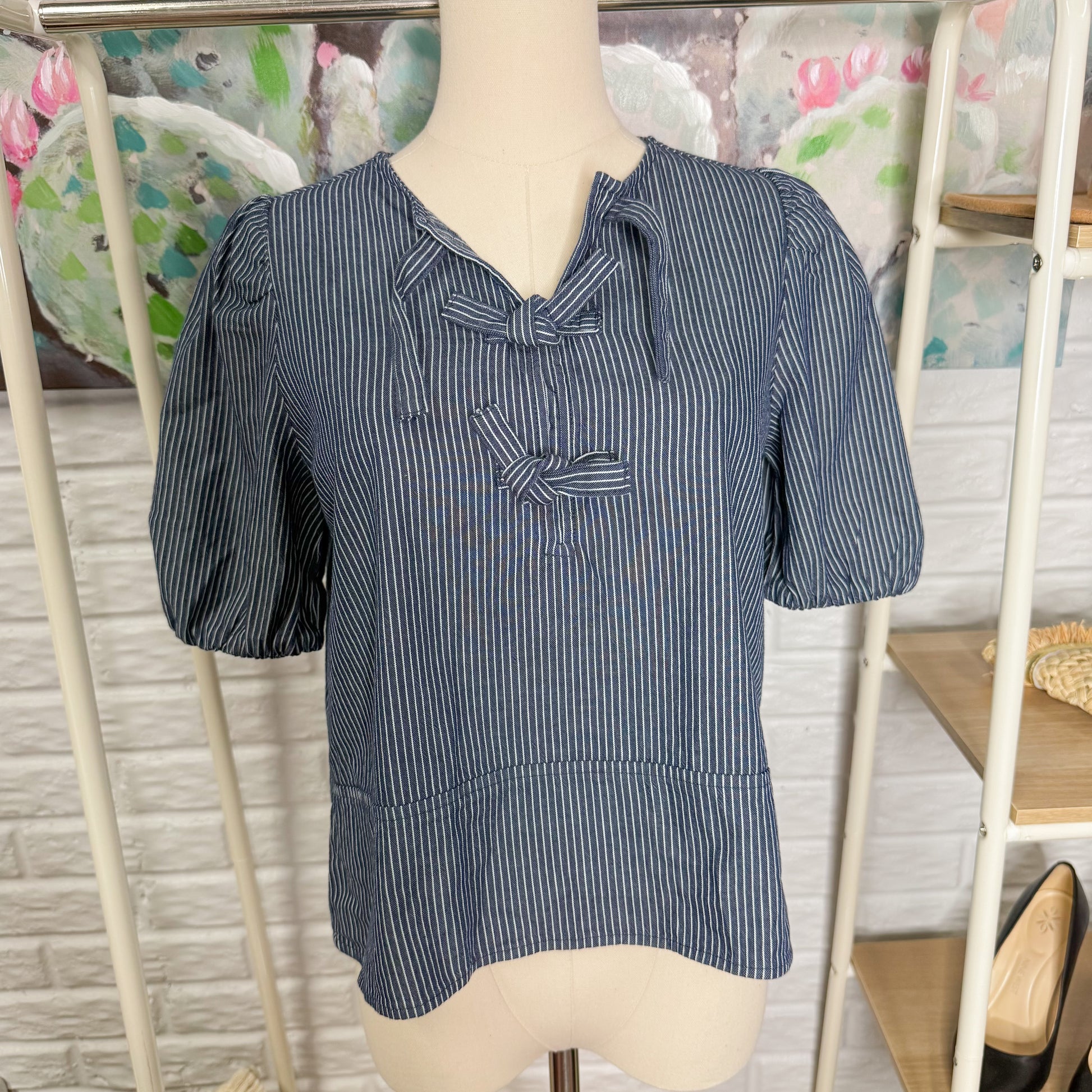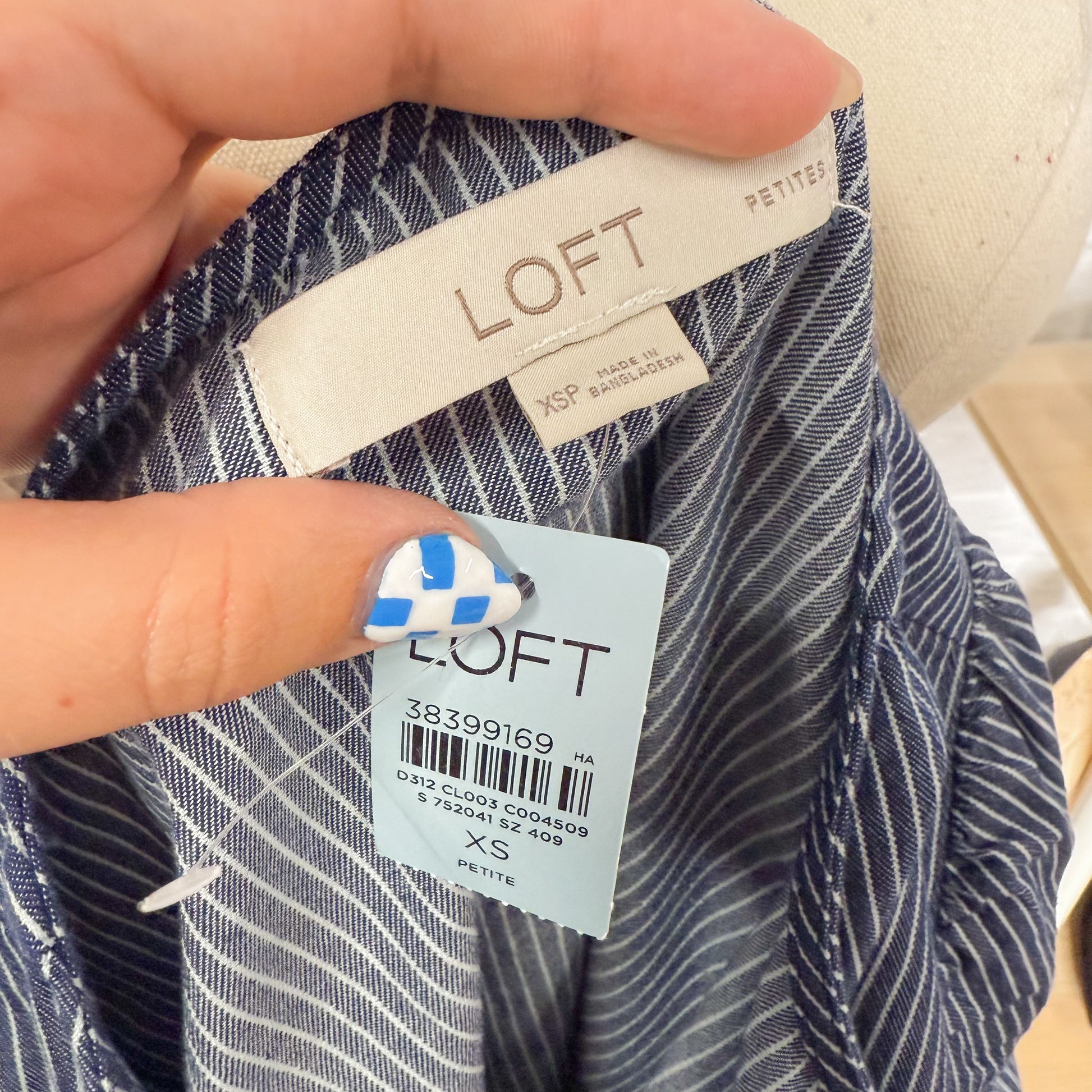 LOFT NEW Striped Chambray Bow Top (XSP)