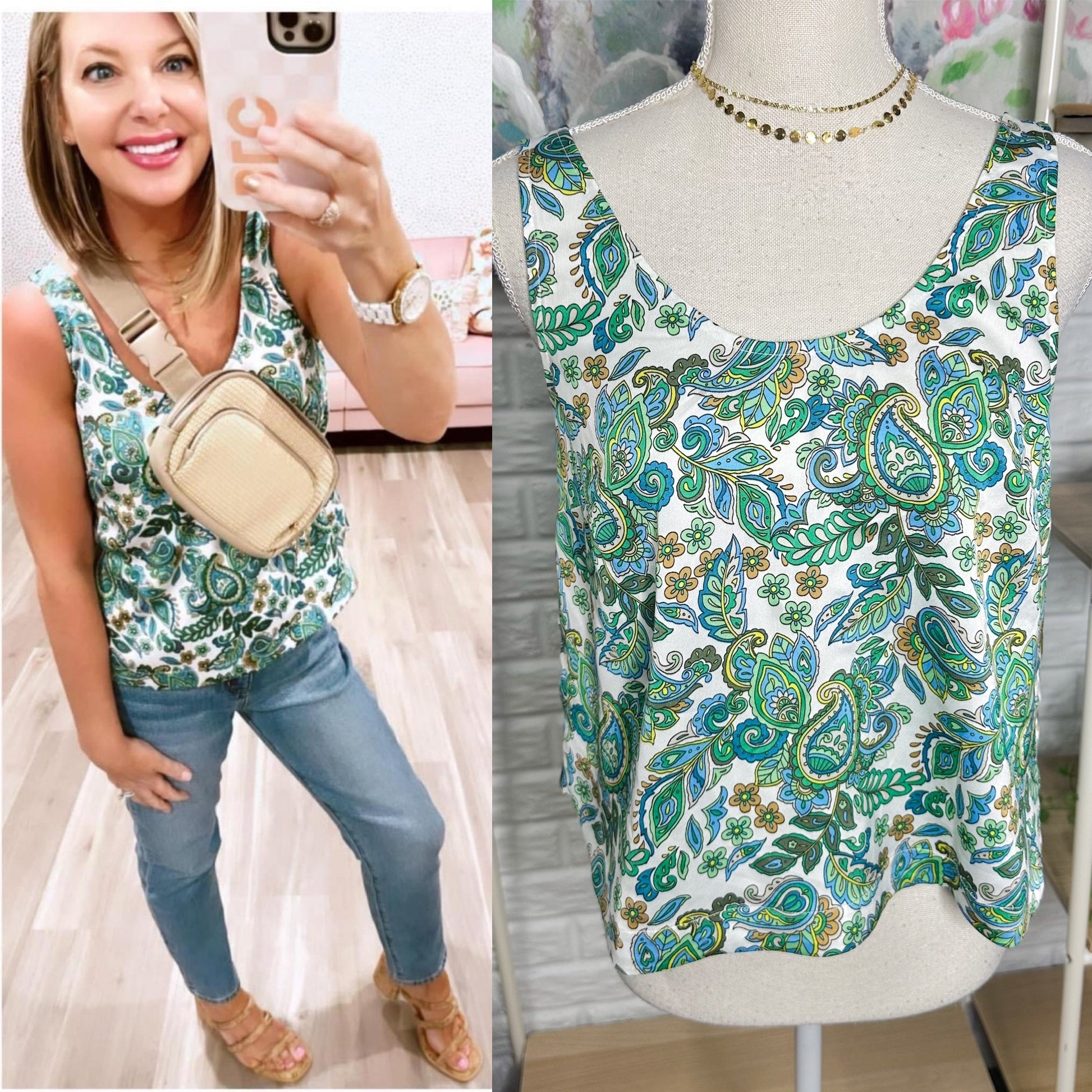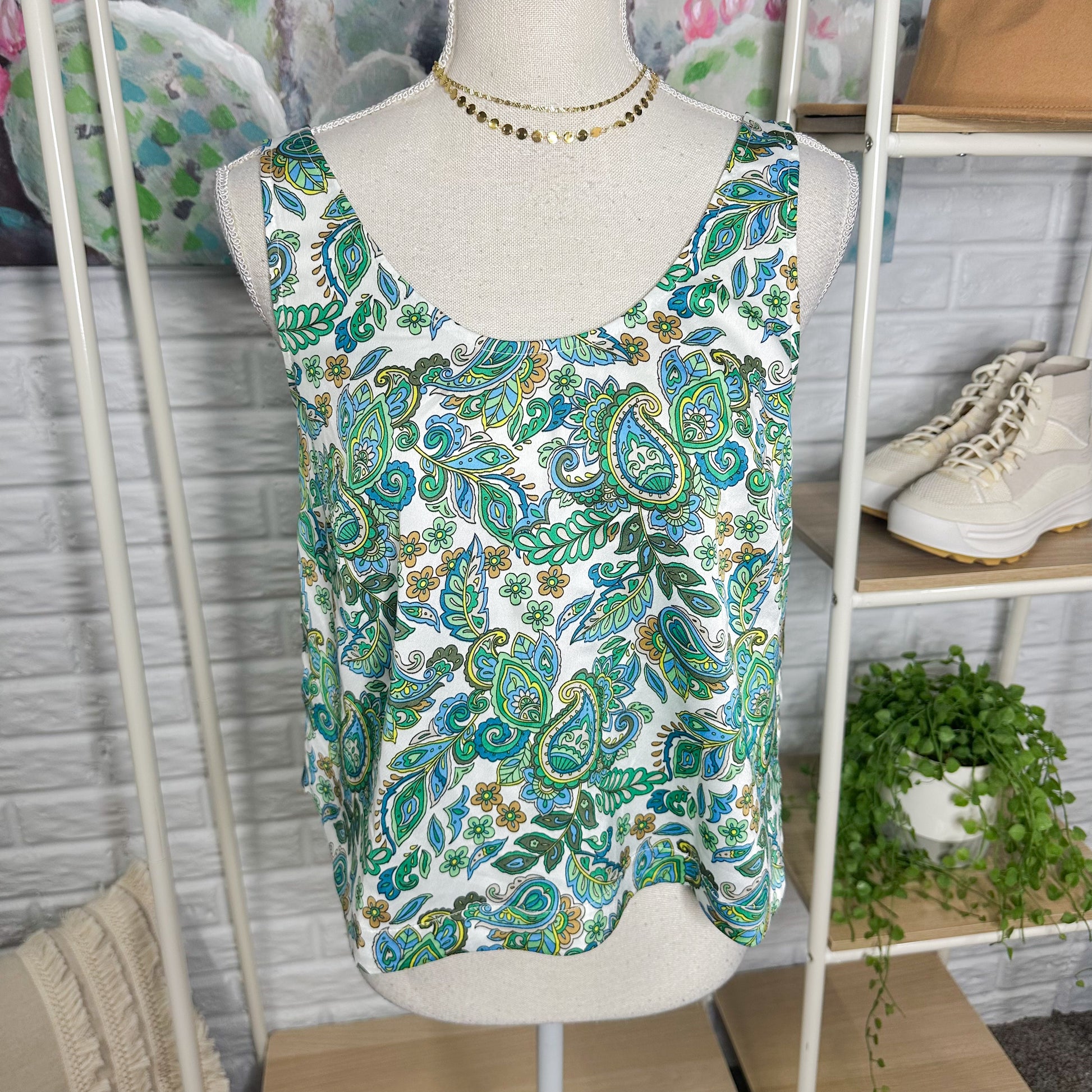LOFT Paisley Satin Hi-Lo Hem Tank Top (XS)