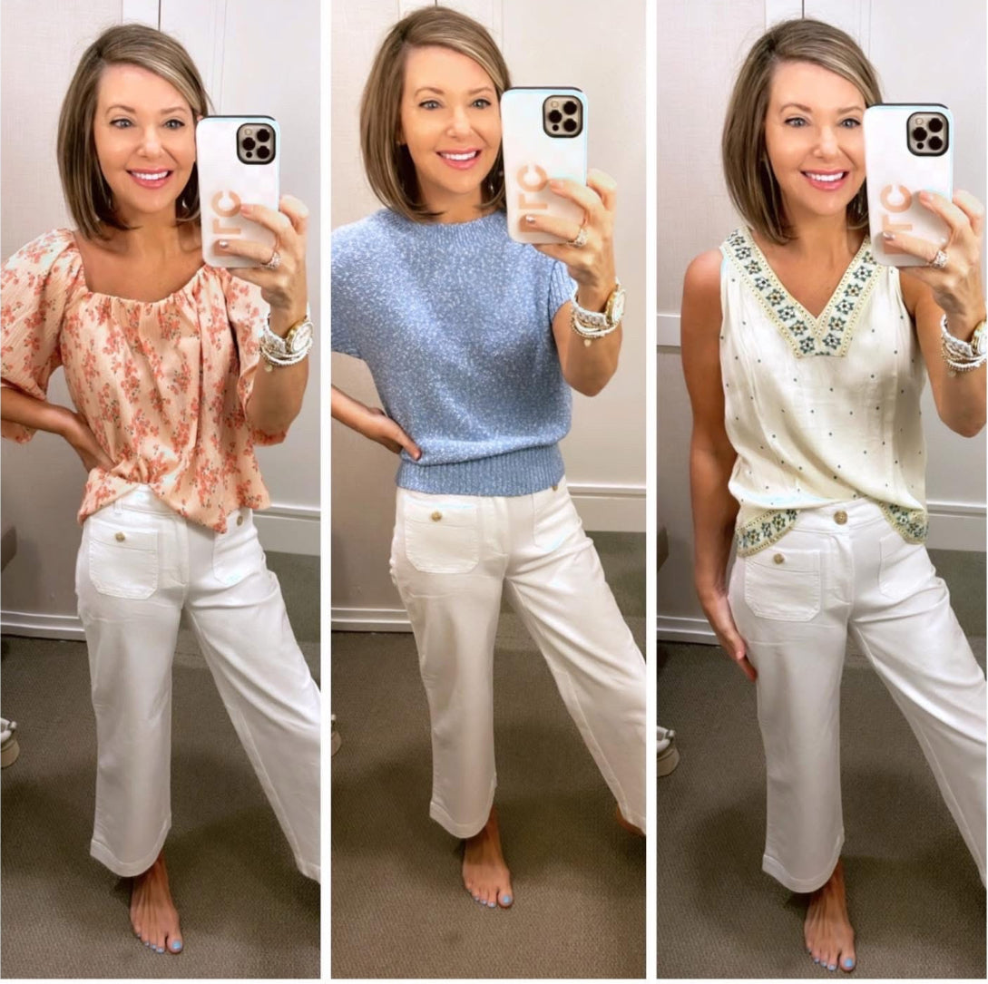 The Palmer wide leg pants in white. Classics that can be dressed up or down.