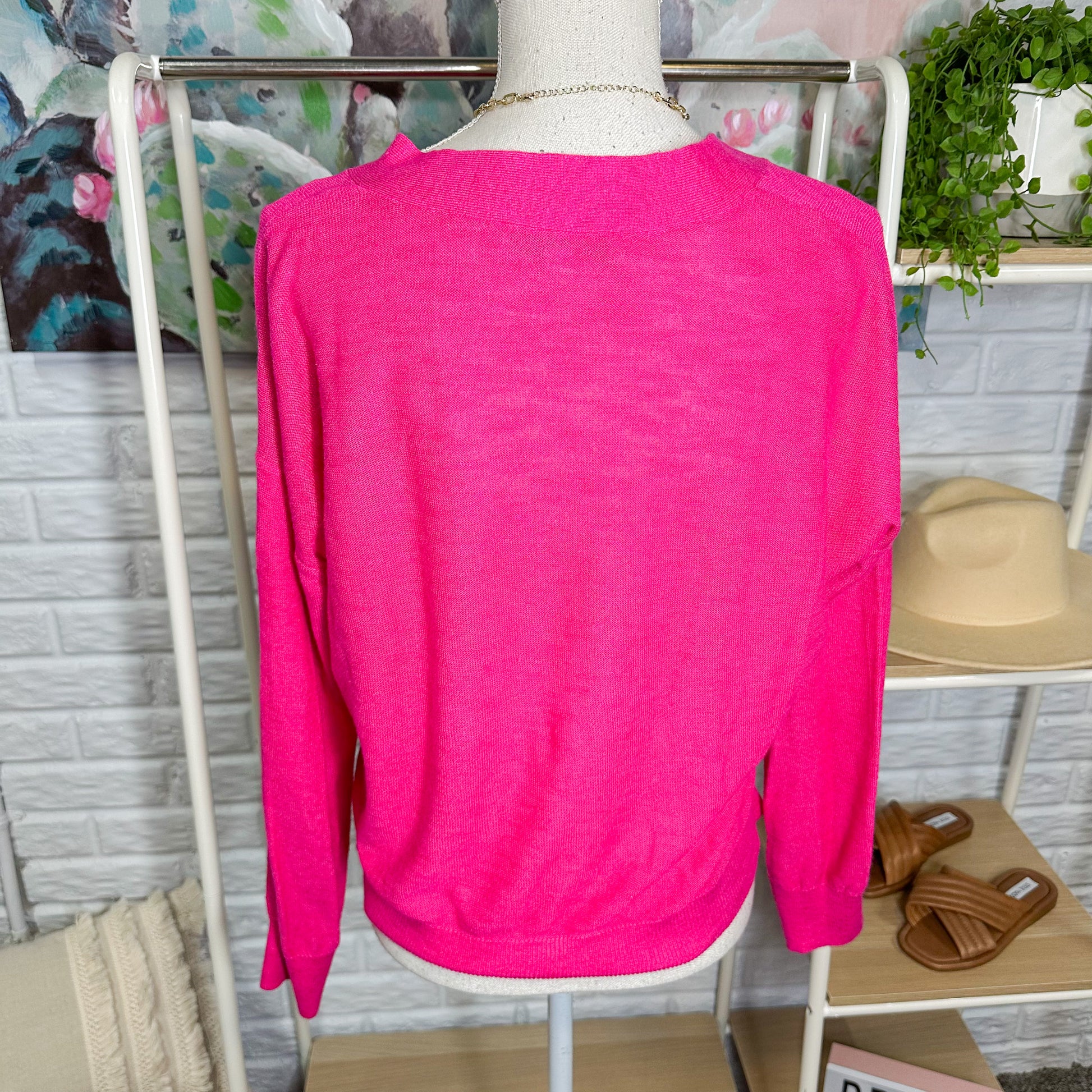 LOFT Pink Drop Shoulder V Neck Cardigan Size XS