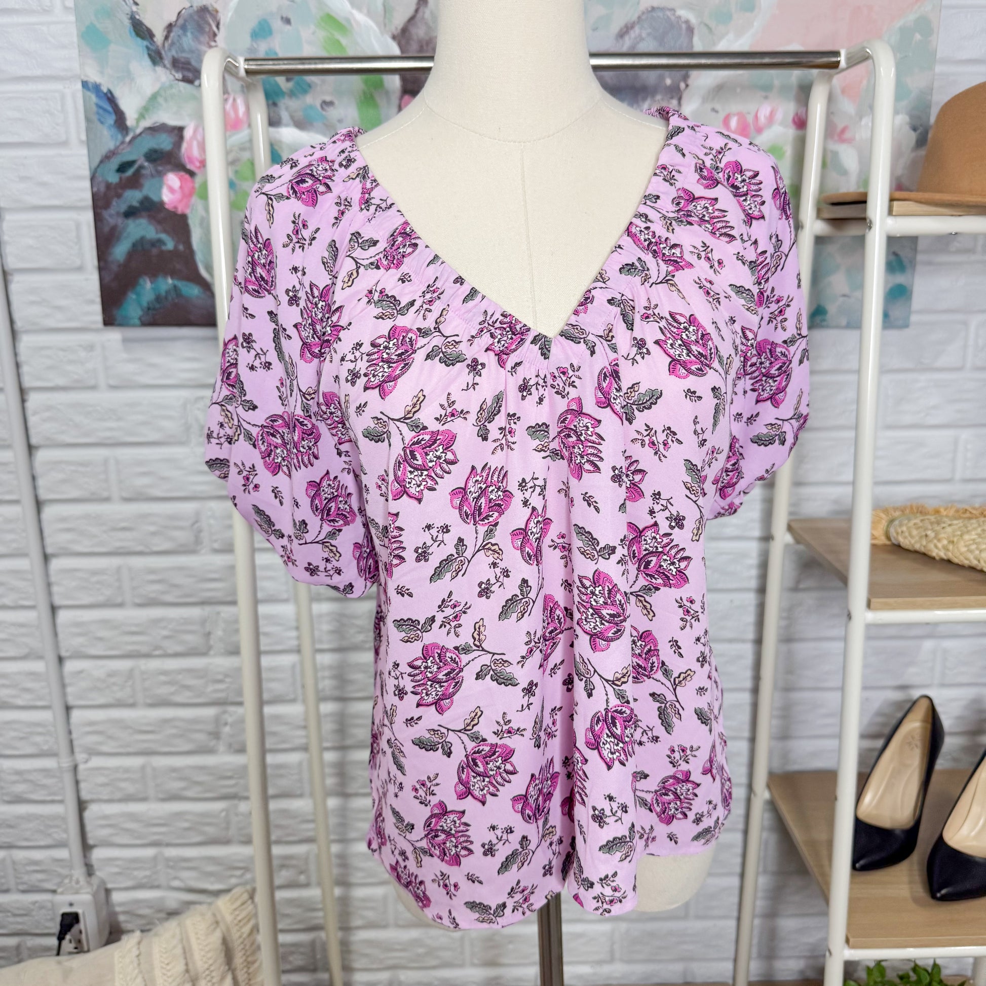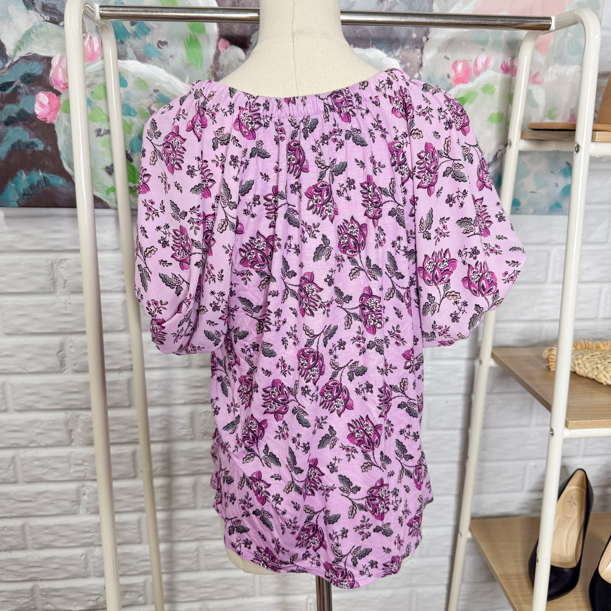 LOFT Purple Mixed Media Floral Top (XS)