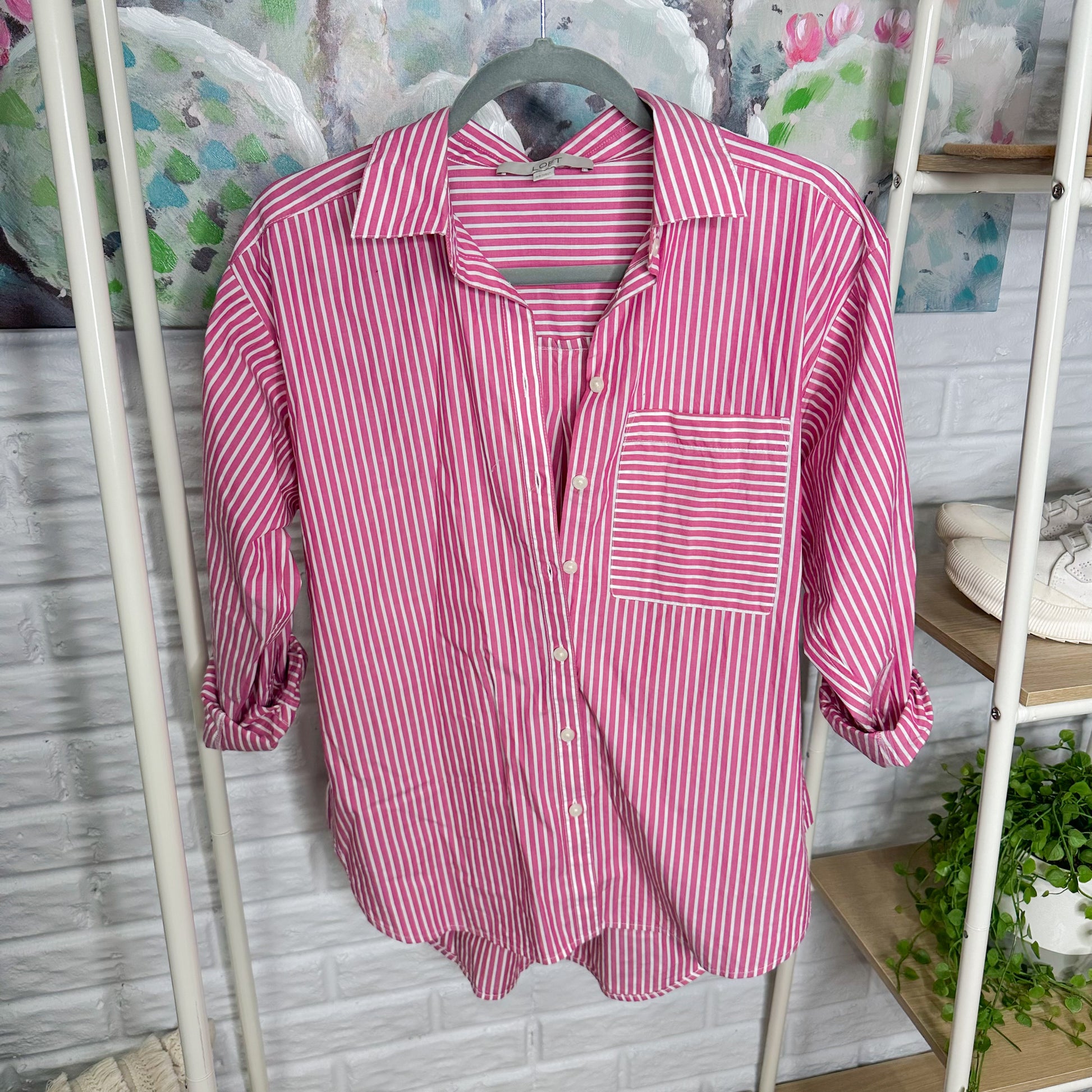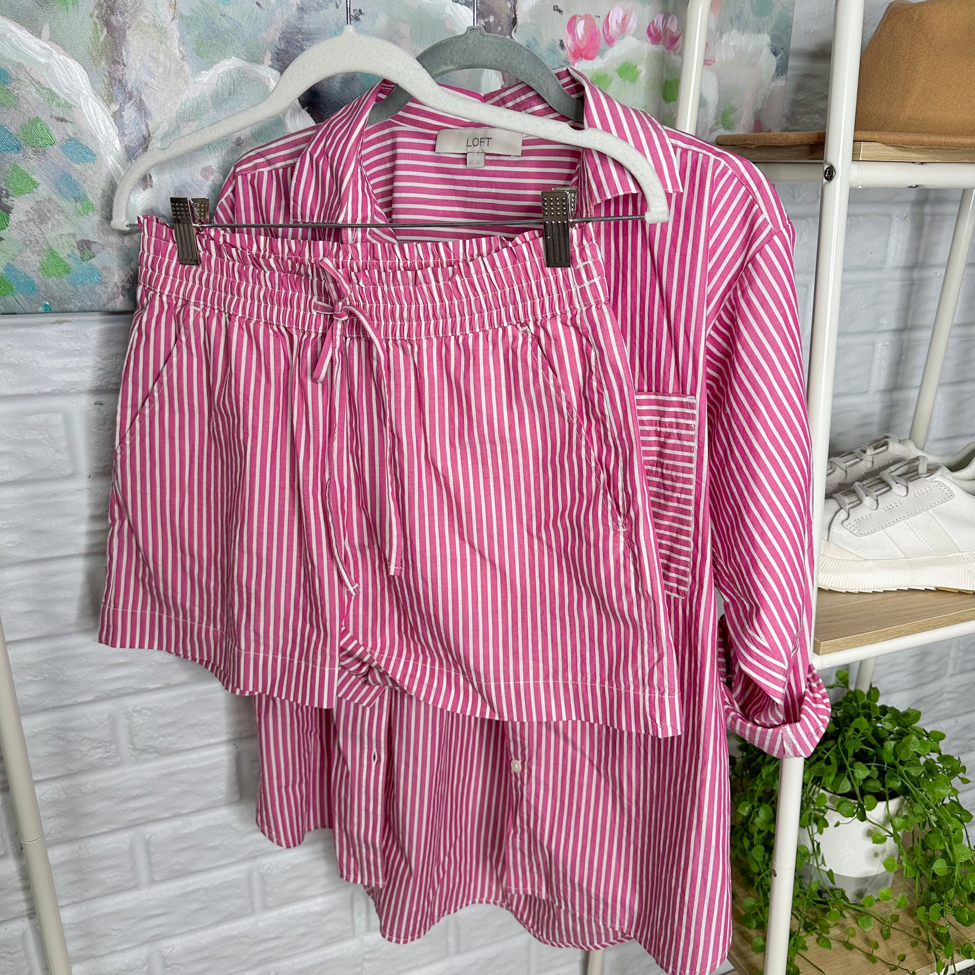 LOFT Striped Poplin Short & Button Down Top Set (XS)