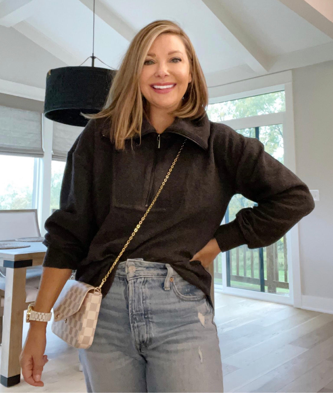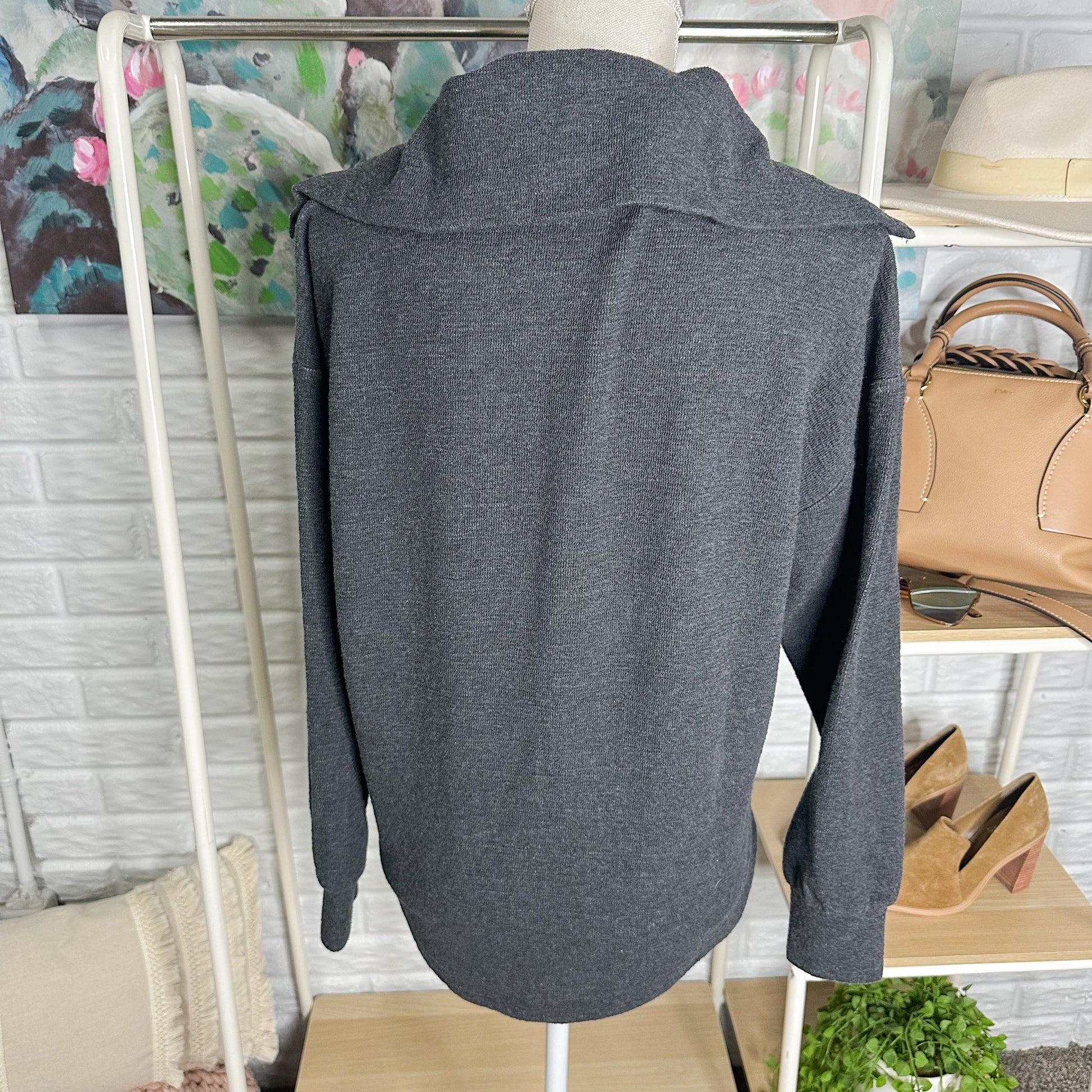Lou & Grey Textured Zip Shirttail Top Size Small