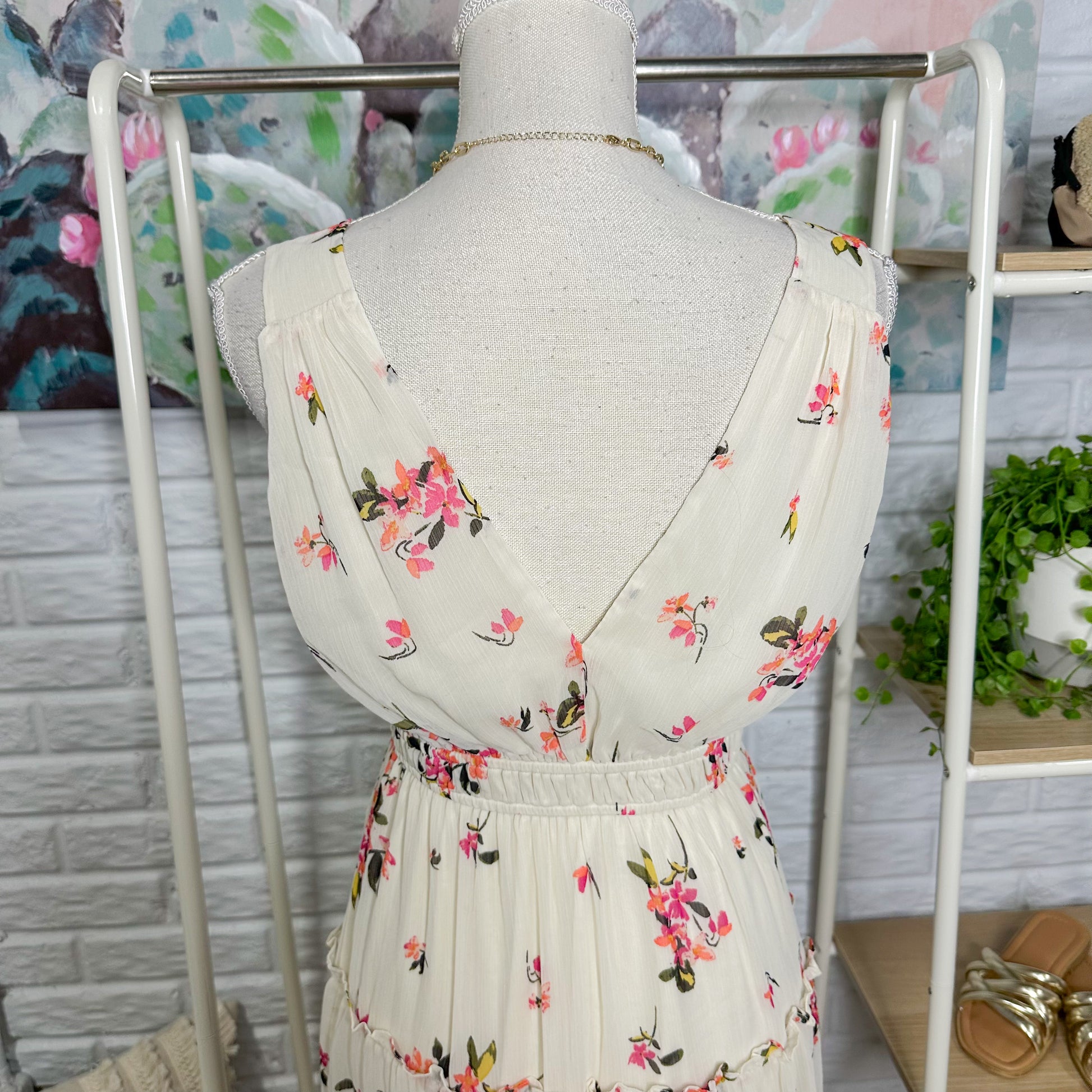 Maurice’s Cream Floral Tiered Midi Dress (XS)
