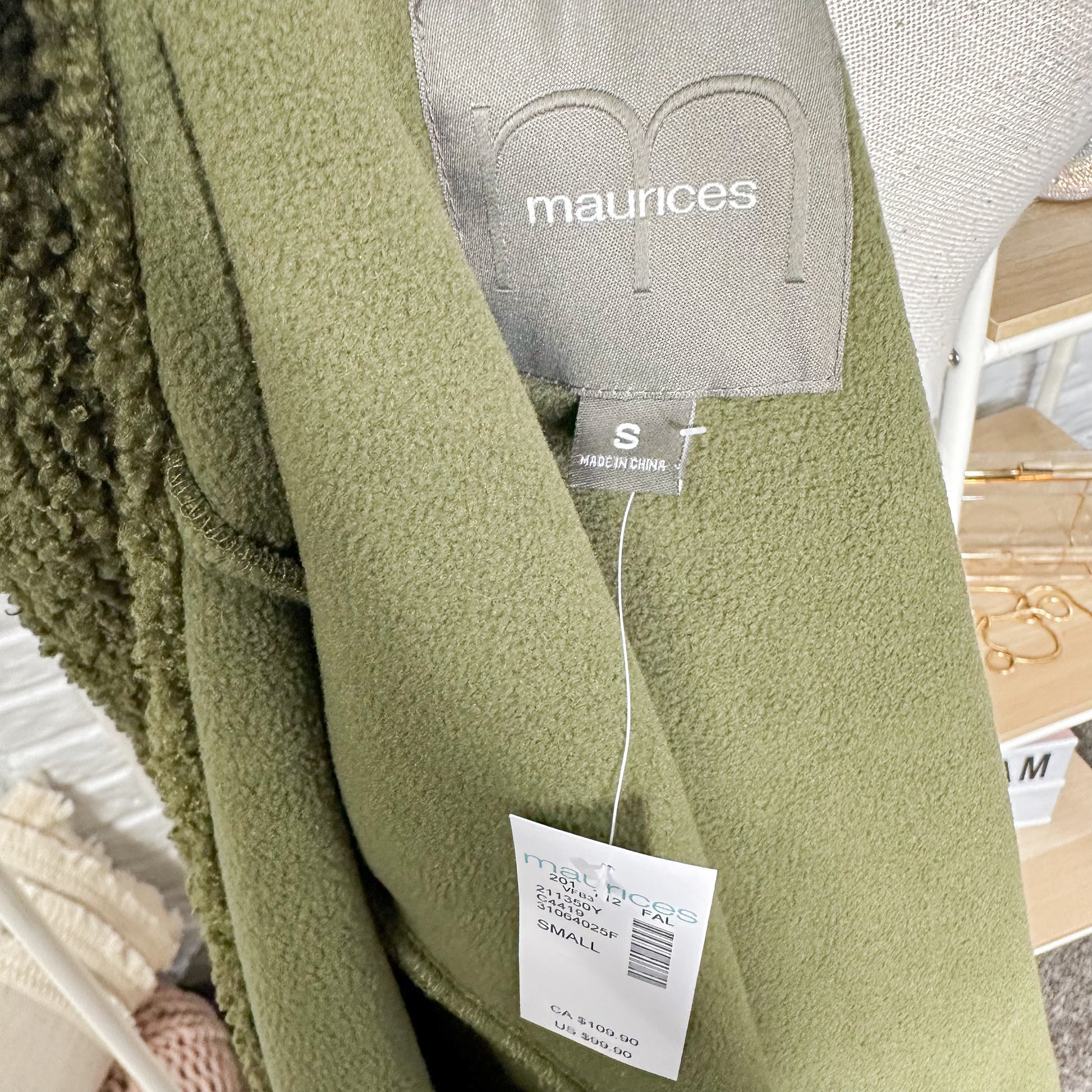 Maurice’s New Olive Teddy Sherpa Jacket Size Small