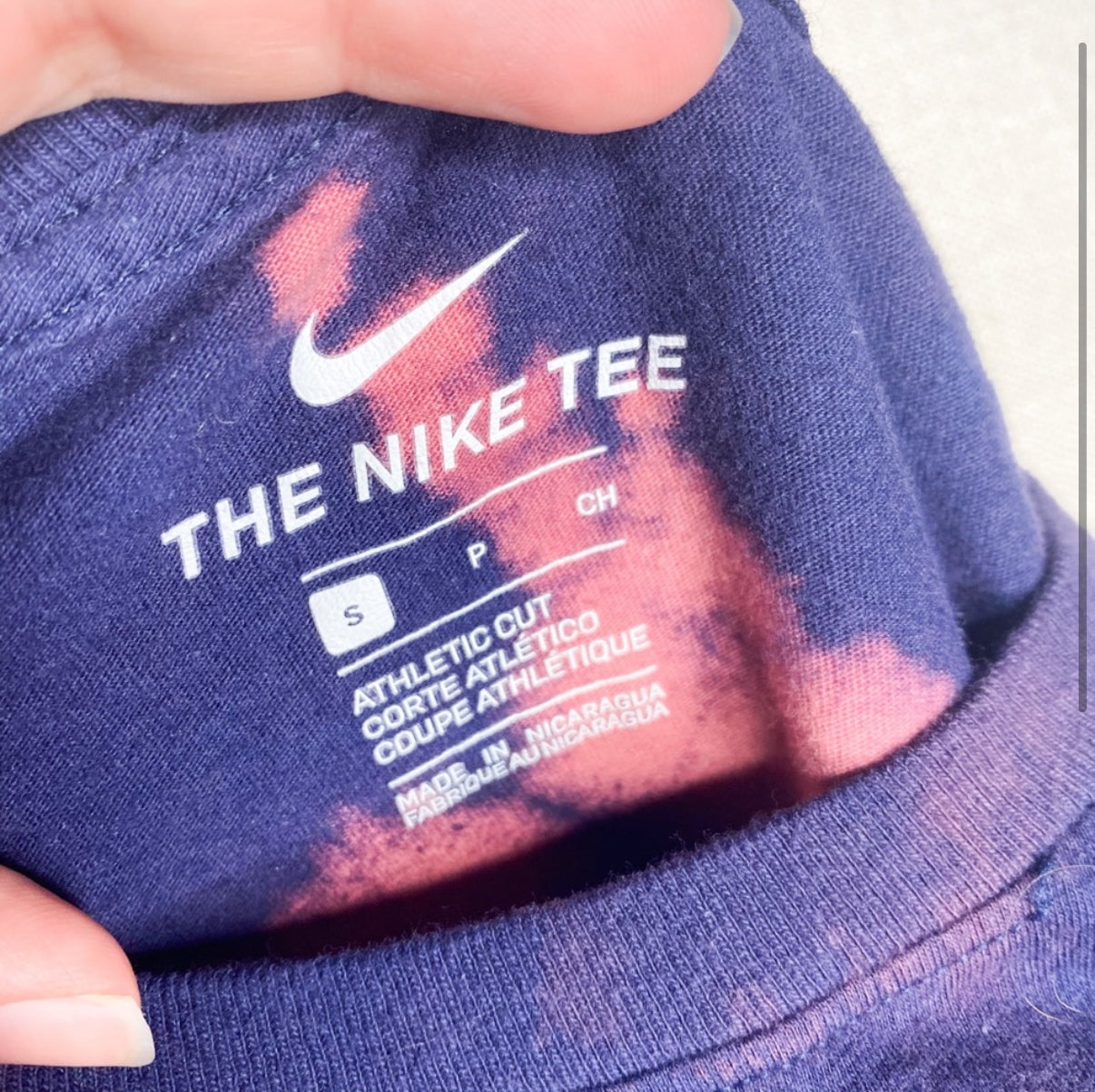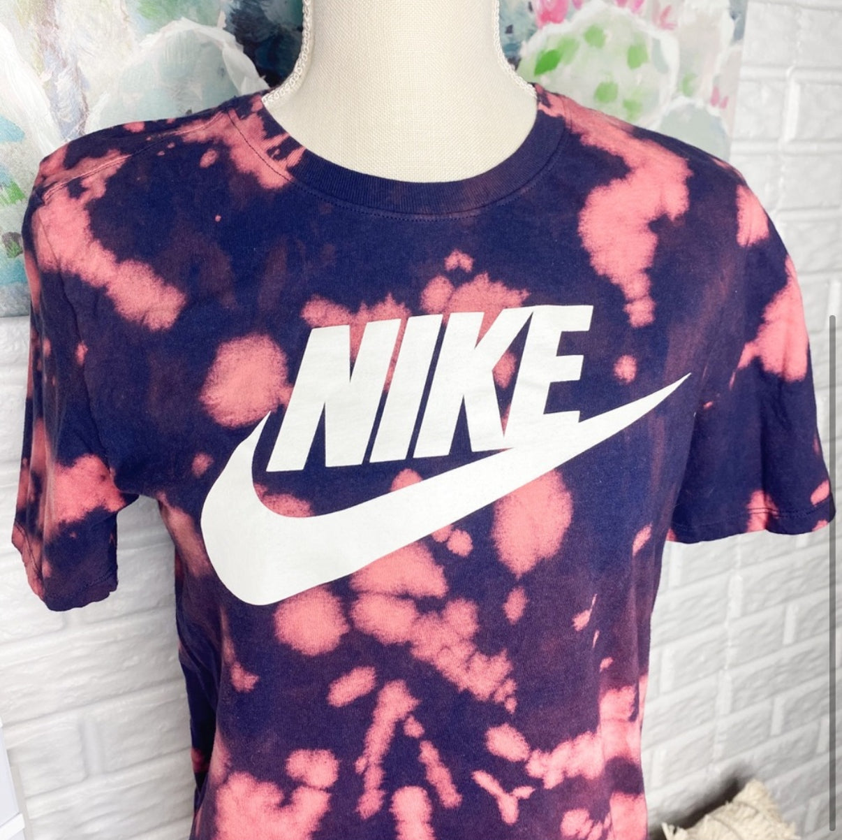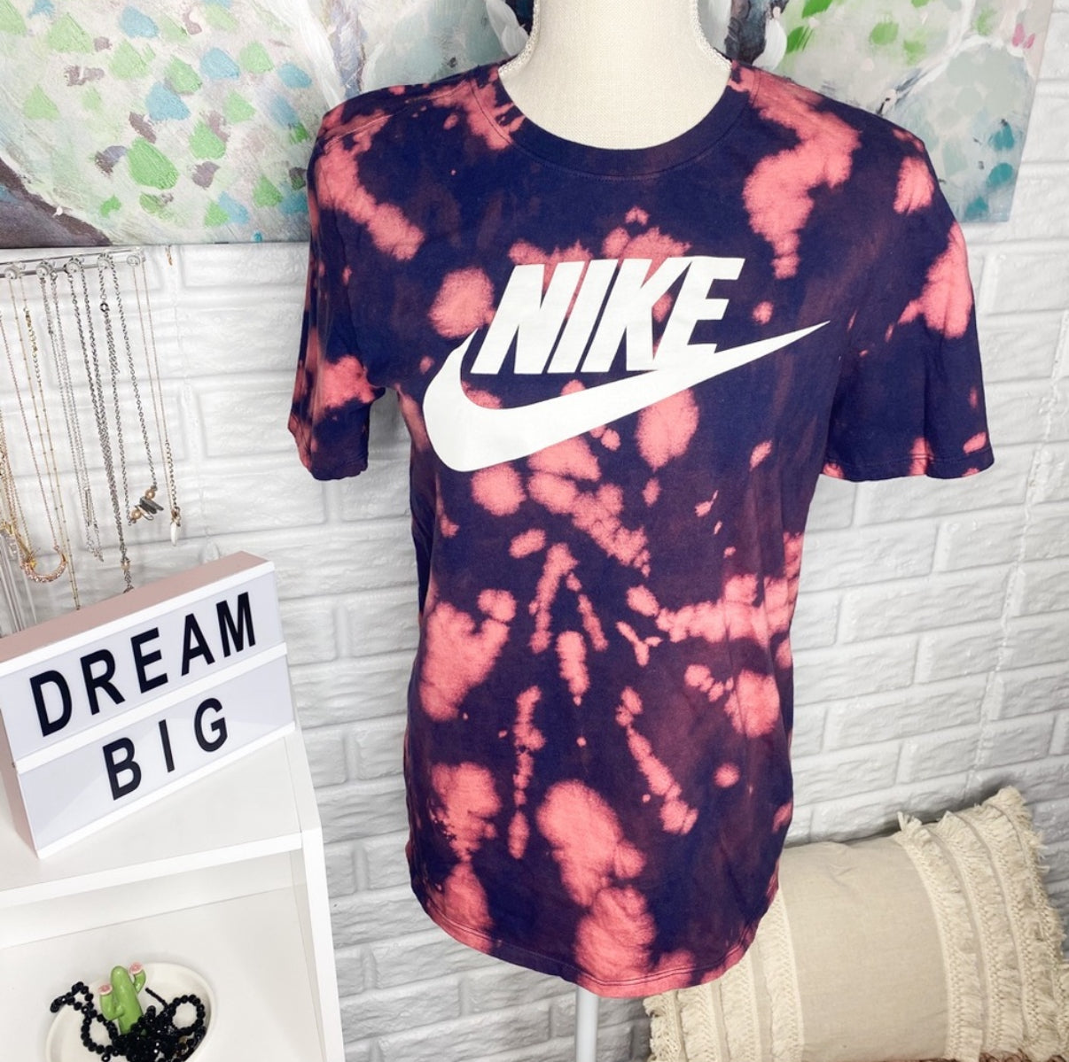 A short sleeve tee with a custom bleach tie dye design and the Nike logo.