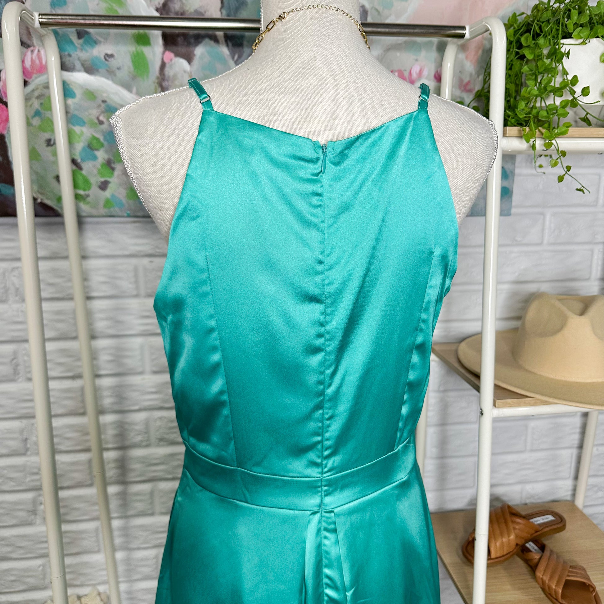 Prettygarden New Teal Satin High Low Maxi Dress Size Medium