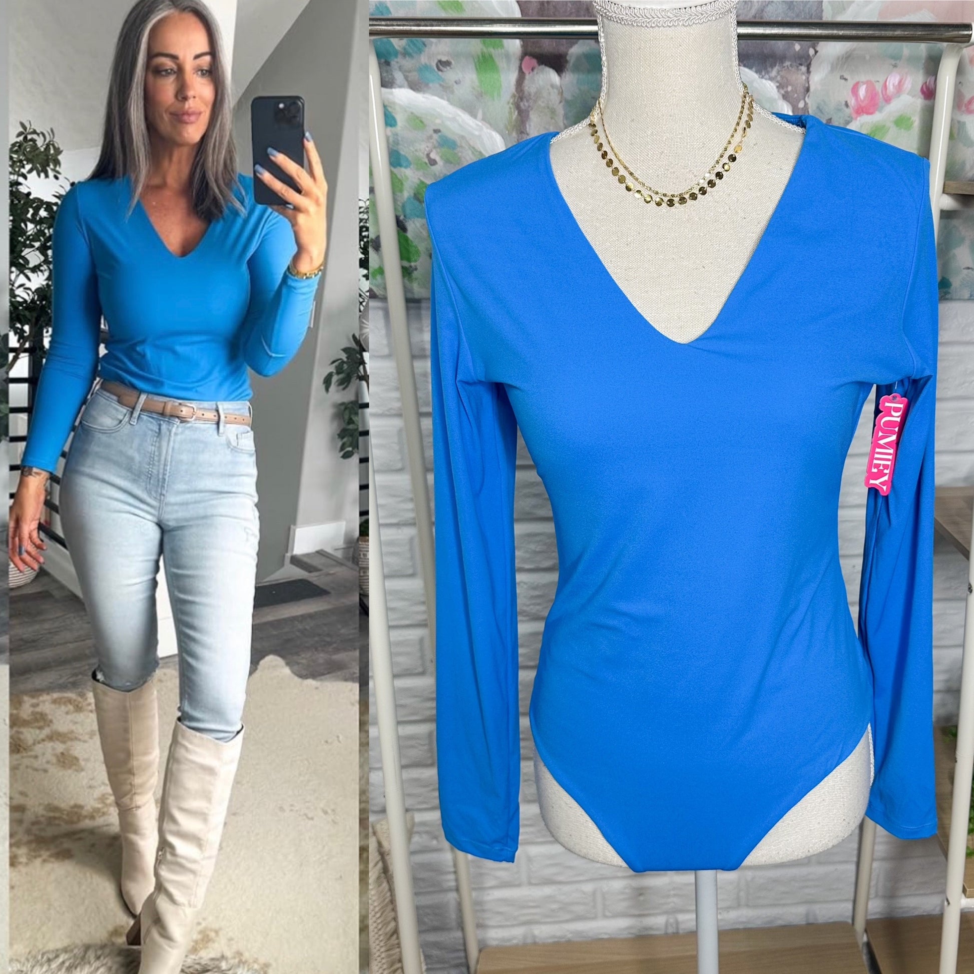 Pumiey New Blue Long Sleeve Bodysuit (L)