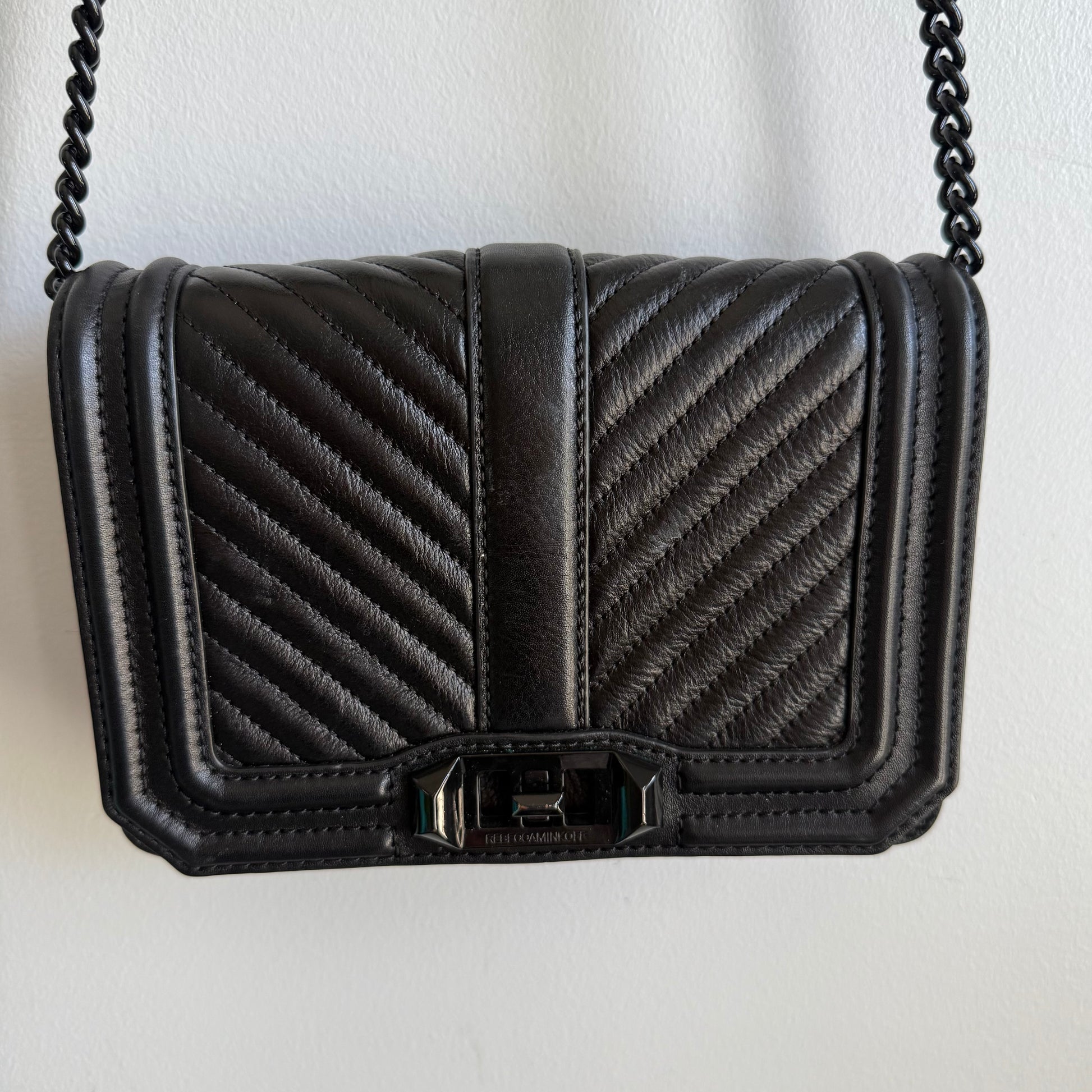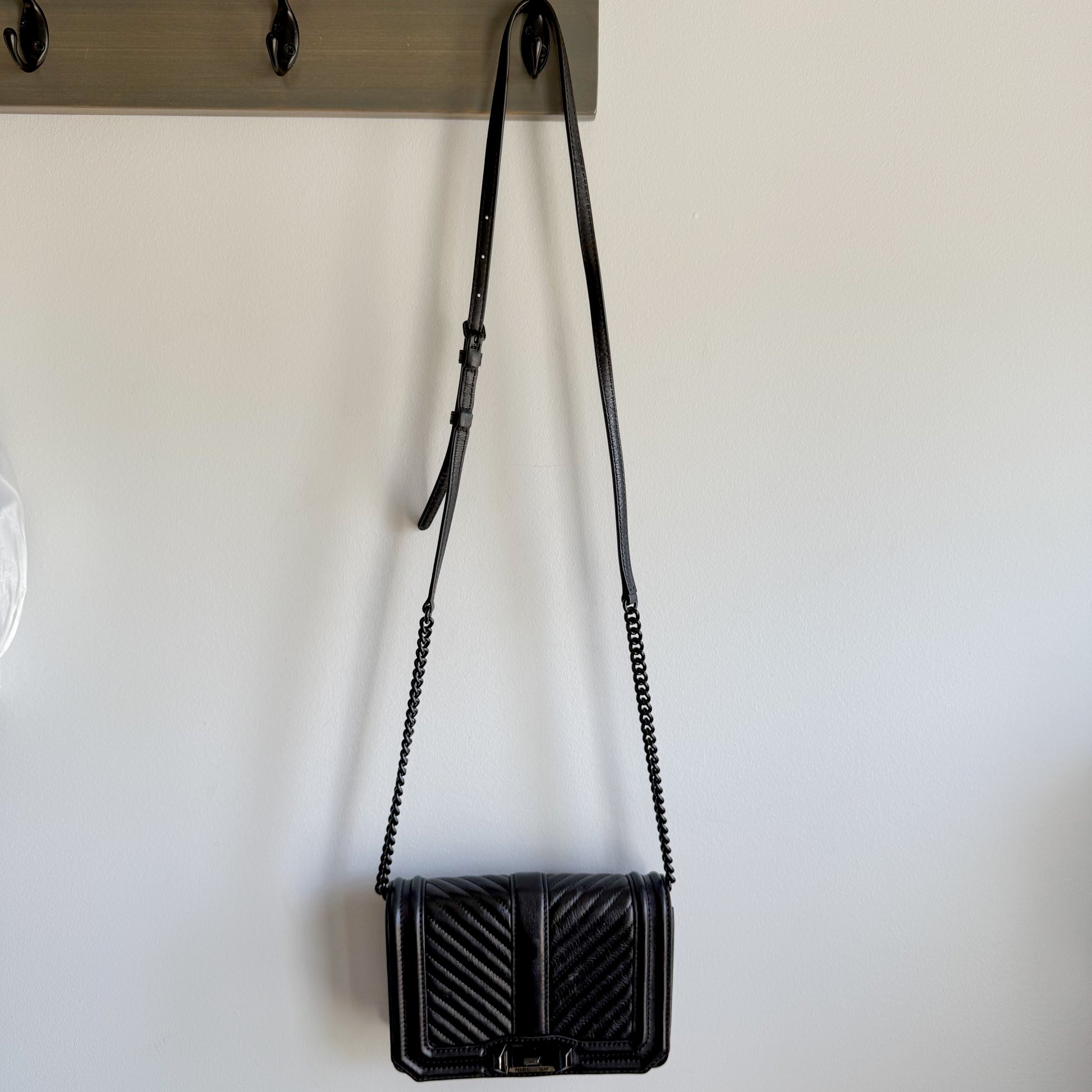 Rebecca Minkoff Chevron Quilted Small Love Crossbody Bag in Black