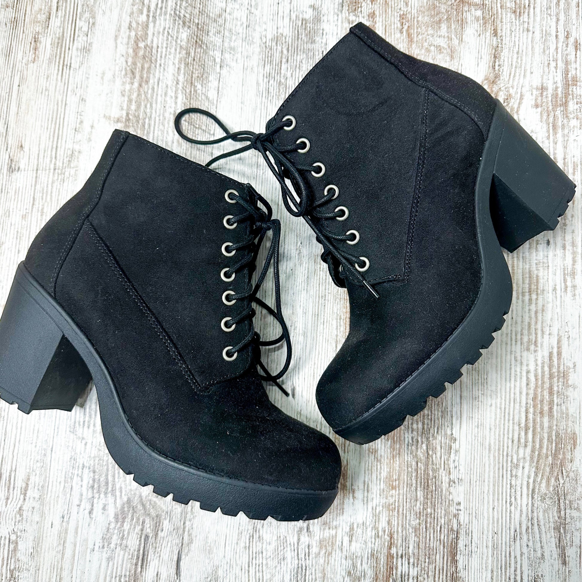Soda Black Lug Sole Chunky Lace Up Boot (9.5)