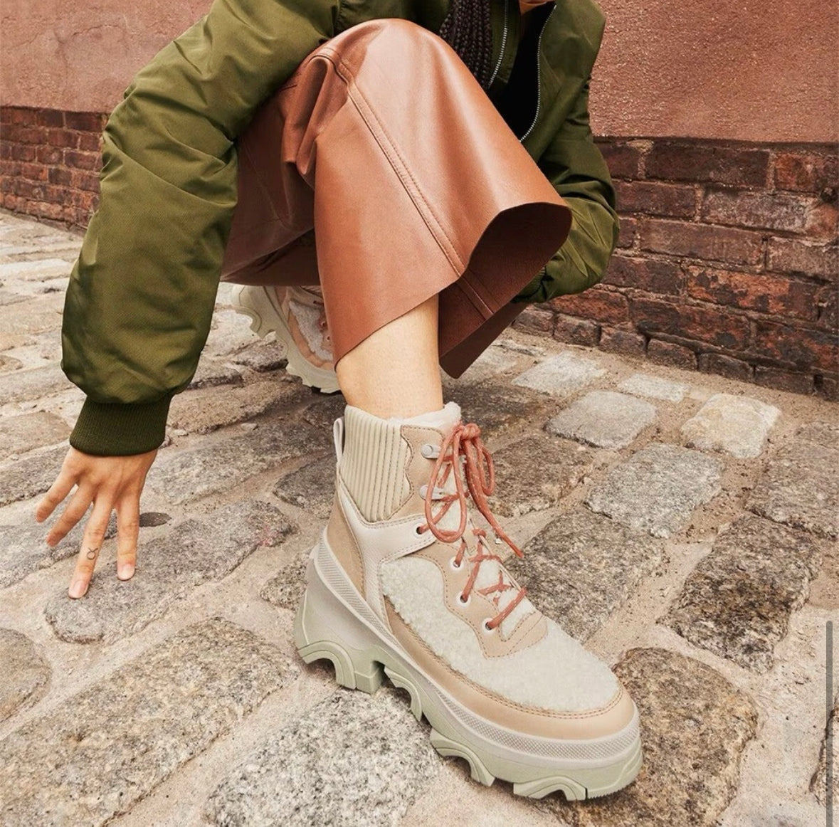 Sorel Brex Cozy Lace Up Boots. A boot that stands out in — and stands up to — harsh winter weather, the Brex Boot Cozy Lace offers the best of both worlds. It combines a waterproof build, cozy faux shearling, and hiker-inspired details to take on cold days. Even better, it has super comfy cushioning and a statement rubber sole. Heel height: 3''. Platform height: 1.5''. Imported.