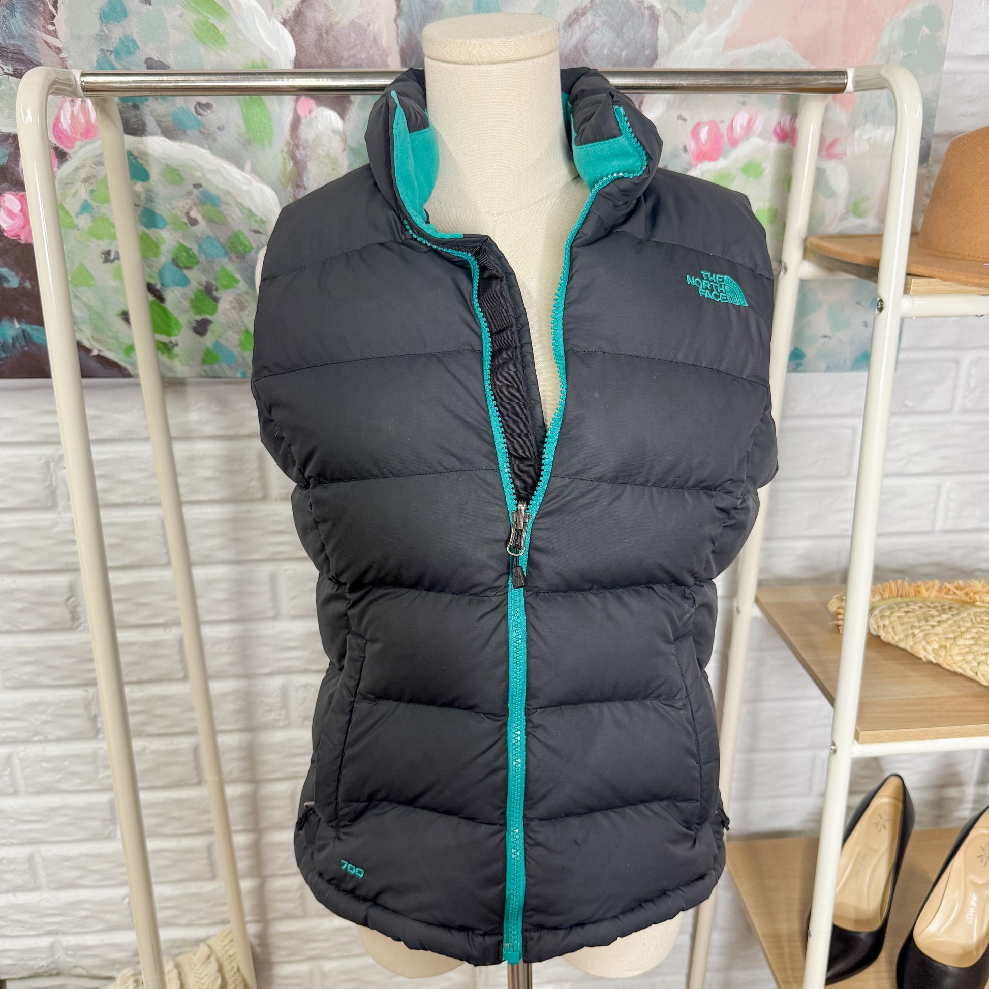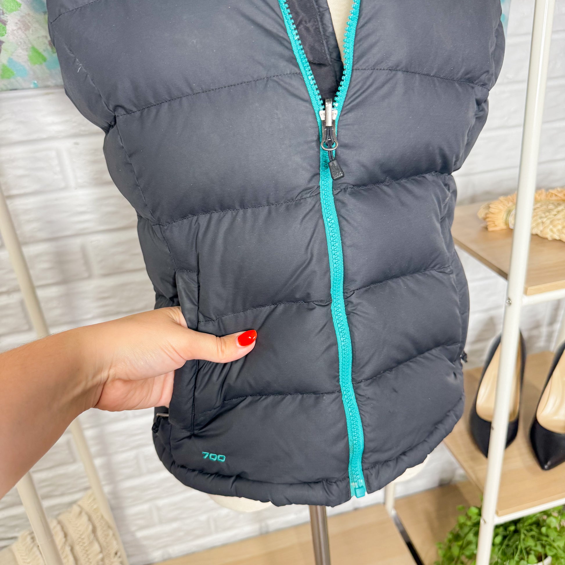 The North Face 700 Goose Puffer Vest Gray/turquoise (S/P)