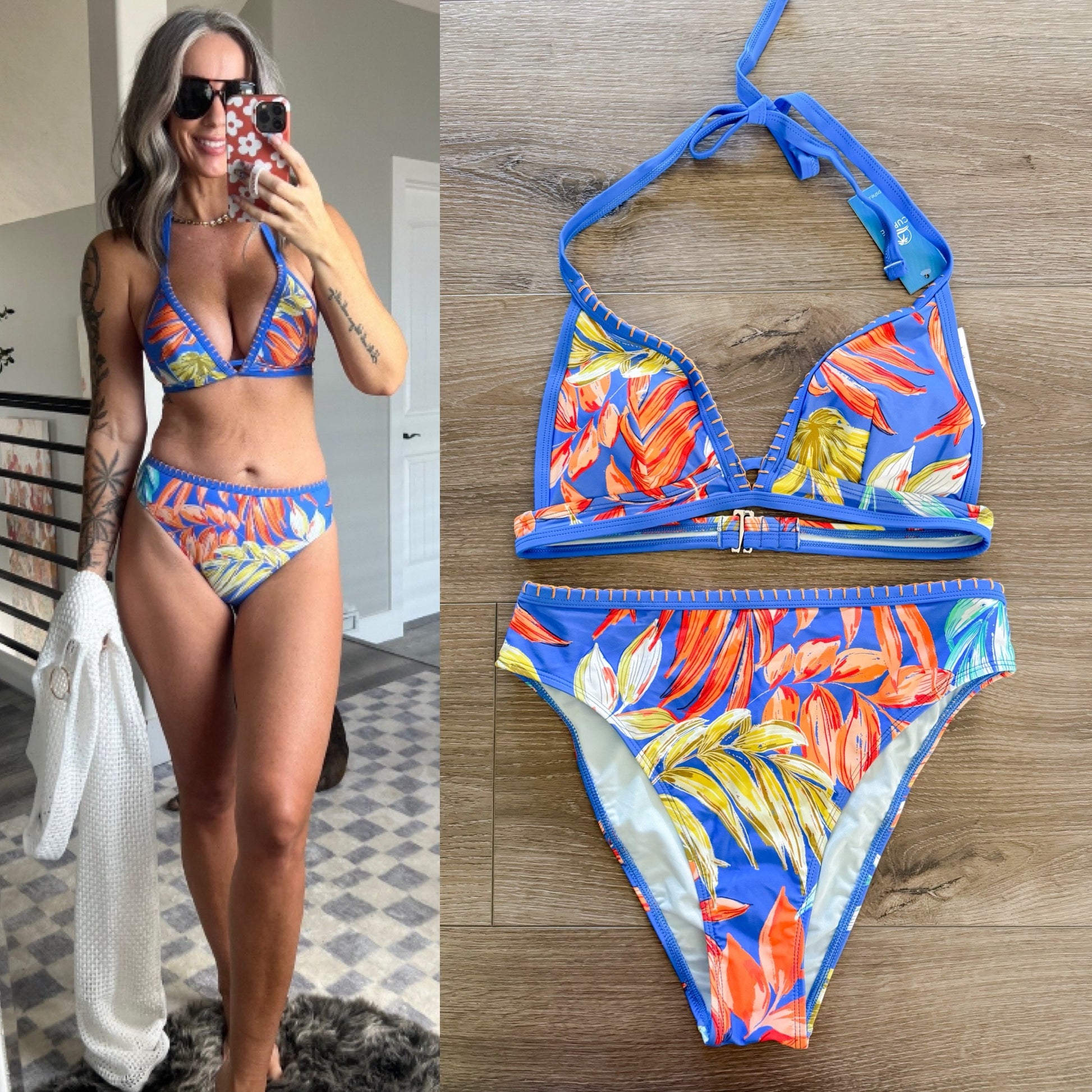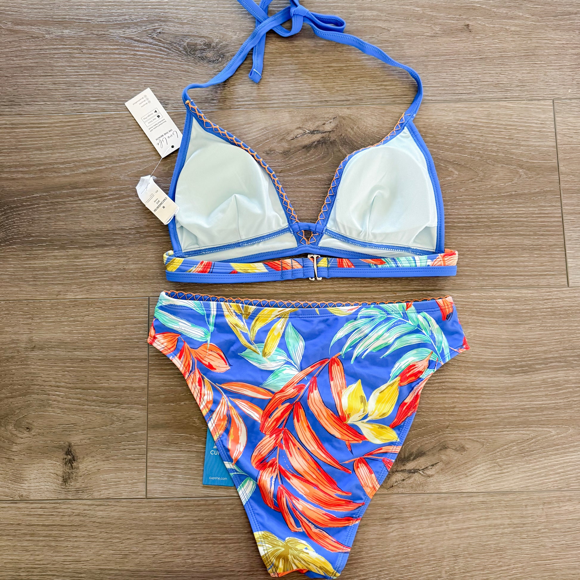 Tropical Print Whip Cupshe New Stitch Bikini Top & High-Waisted Bottoms Set (M)