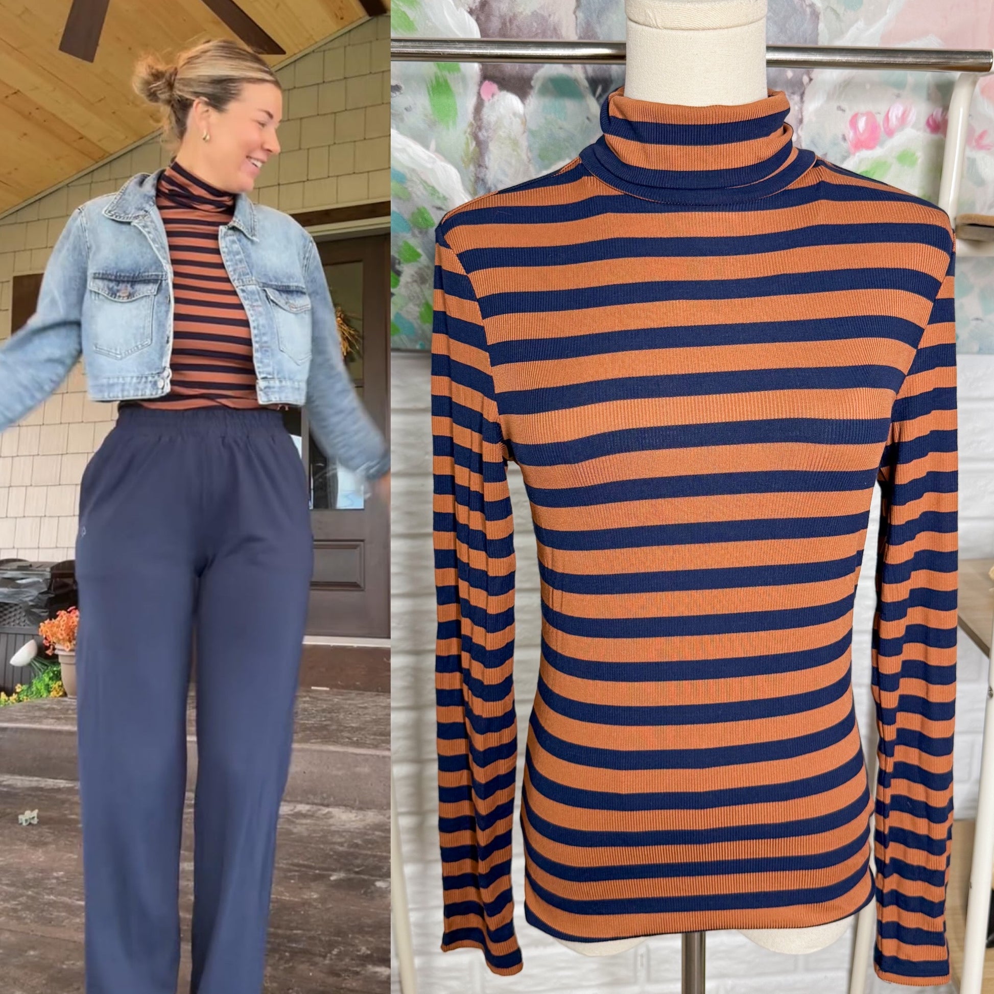 Yumiday Striped Ribbed Long Sleeve Turtleneck (M)